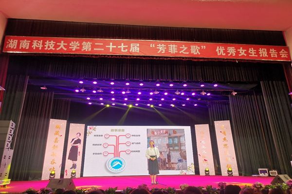 5月9日,湖南科技大学第二十七届“芳菲之歌”优秀女生报告会在南校俱乐部成功举行。校党委书记唐亚阳、副校长廖湘岳出席,相关职能部门、学院负责人参加,和全校师生代表一起聆听10位优秀女生的奋斗经历和学习经验。在报告会上,我院刘建敏作为优秀学生代表,讲述了自己作为青年马克思主义接班人坚定的理想信念和优秀的实践成果。