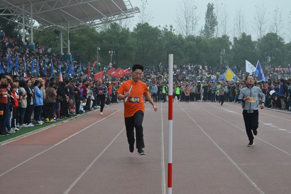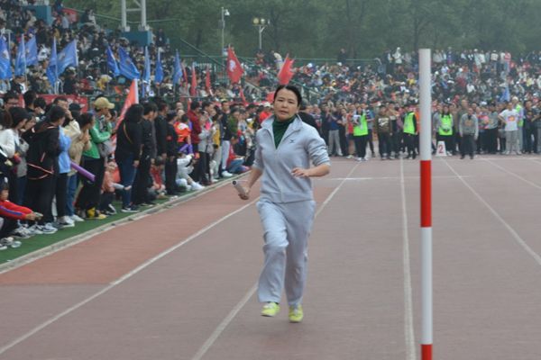 本次教职工趣味运动会共有四个项目:“蛟龙出海”“同心追梦”“同心协力”和50乘30“同心杯”往返接力赛。我院教师代表提早来到观众席处,讨论赛事,安排事宜。老师们满怀信心,摩拳擦掌,准备在今天的赛场上大展身手。在热身之后,今天的第一个比赛项目“蛟龙出海”开始了。老师们脚踝缠着胶带,手挽着手,双眼目视前方,紧盯着终点线。一声枪响后,老师们齐声喊着“一二一”,沉着冷静地前进,顺利走向终点线。紧接着,在足球场地上的第二个比赛项目“同心追梦”中,老师们紧握杆子,疾速奔跑,交接杆子时配合默契,争分夺秒,来回奔跑,赢得观众席一片尖叫与欢呼,老师们与同学们脸上都洋溢着欢乐的笑容。