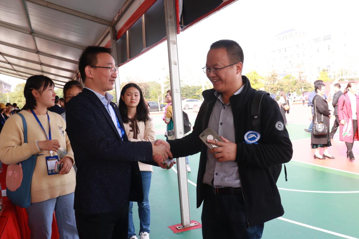今日的北校田径场格外喜庆热闹,田径场外围位置热气球拉起了红色条幅“求真务实,七十年桃李满天下;革故鼎新,七十年栋梁遍神州”;田径场更有横幅“建设特色鲜明的双一流高校”等标语,传达出湖科人的优良传统作风,以及新形势下改革创新奋勇争先的决心。而田径场外,我院则设置了校友接待服务站,接待到访的各位校友,以期让广大马院校友感受到如家般的温暖。接待站的志愿者们忙碌在各自的工作岗位上,用热情和辛勤服务校庆。校友们在志愿者的引导下,找到自己的毕业级次并签名确认;接着在报到处填写校友信息登记表,留给母校他们最新的信息;然后领取学院赠送的礼品包。完成报到后,校友们就在志愿者的引导下参加由学校举办的创新发展大会,或自行游览校园。