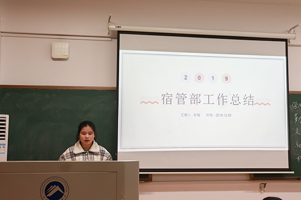 总结大会进入第二项,各部门部长对本部门工作进行总结展示。我院十三个部门的部长依次进行总结,各部长大致从总结工作内容、反思工作不足、提出未来计划三个方面做了相应的展示。其中,志愿团展示了其工作内容多样化的特点,包括举办爱心书信,风车坪的爱国主义教育活动,志愿团成团大会,保护湘江等多种活动;学风督察部和体育部每日考勤的坚持,保证了我院学子上课的组织性和纪律性;科技部则由先前的经验不足,在不断的探索中逐渐得到了自我提升和发展,部门之间的配合度得到了极大的提升。各部门的工作各有差异,但都各司其职,保证了我院团委学生会日常工作的顺利进行。