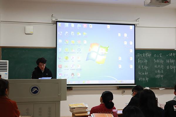 大会开始,学生会主席刘建敏首先对各部门本学期的工作做了肯定评价,各部门工作中都朝着目标不断前行,虽然过程有些曲折,但都取得了不错的成绩。同时她也点出不足之处并提出了对以后工作的要求和期望,表示期待看到各部门工作更加规范化、制度化,期待各部门间信息共享和合作。团二副陈松美更是表示,“回顾工作,有喜有忧,作为马院第一届学生会,迈过从零到一很困难,但很庆幸我们一直在走上坡路。”副主席李尚儒和陶昌进也分别表示了对学院老师的感谢并对自己的工作做了相应的总结和反思。