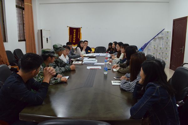 刘哲首先对两位军训教官表示热烈的欢迎,他强调军训是新生体验大学的第一步,军训工作是重点工作,助班与教官之间密切合作是做好军训工作的保障,同时希望教官在确保安全的前提下严格训练新生,在体能训练、内务训练、思想训练上磨练新生。接着,两位教官和各位助班进行自我介绍,助班们表示,在军训期间将听从教官的安排,做好后勤保障工作,希望可以和教官互相关照、团结合作,圆满完成军训。教官们对接下来的军训工作做了详细介绍,军训过程中,不仅会教新生们军事技能,更会培养新生们艰苦奋斗的精神,着重表示一切训练会在保证同学健康安全的前提下开展,从教官们和助班们认真详细的沟通中可以看出他们敬业负责的态度。