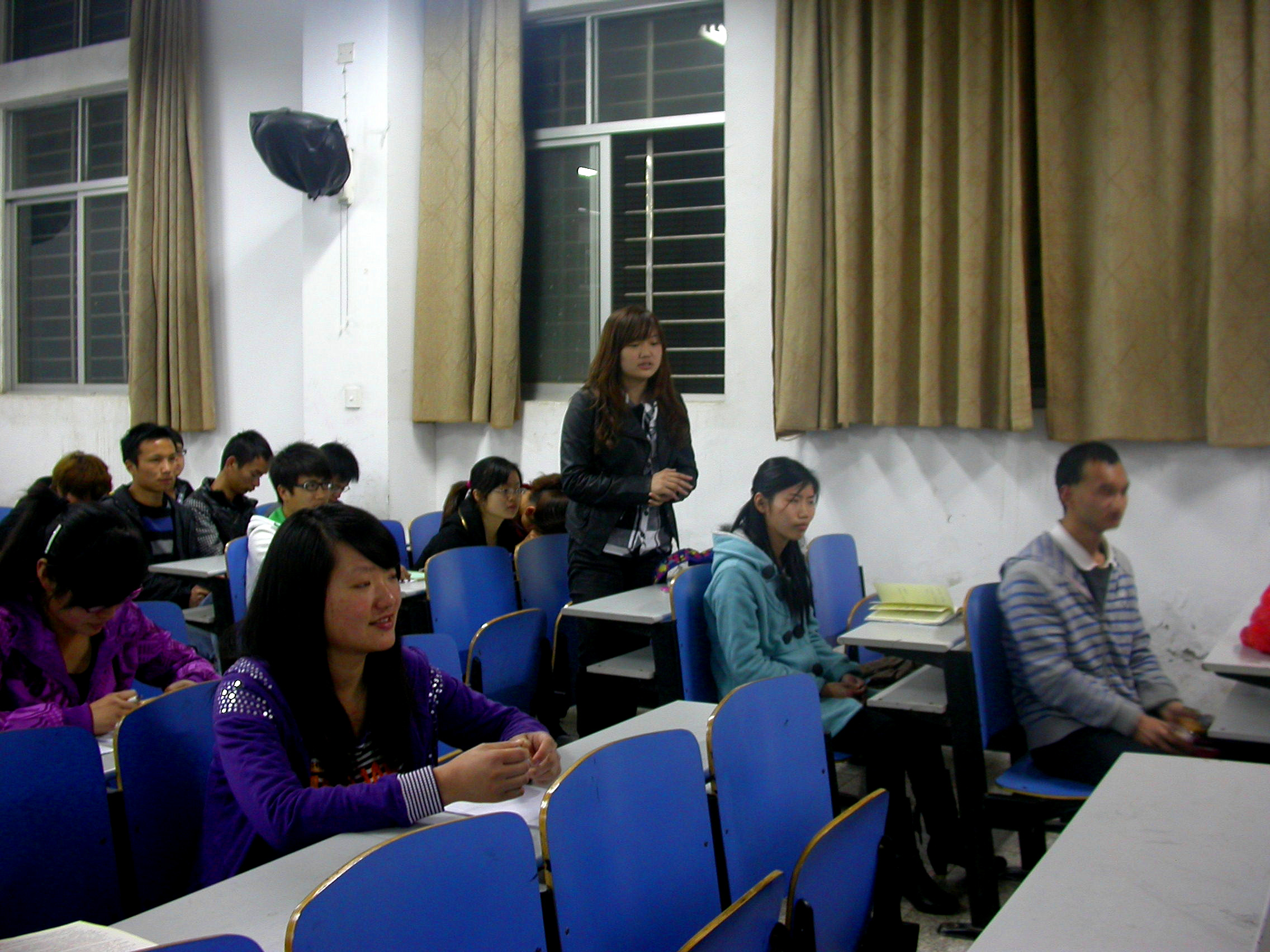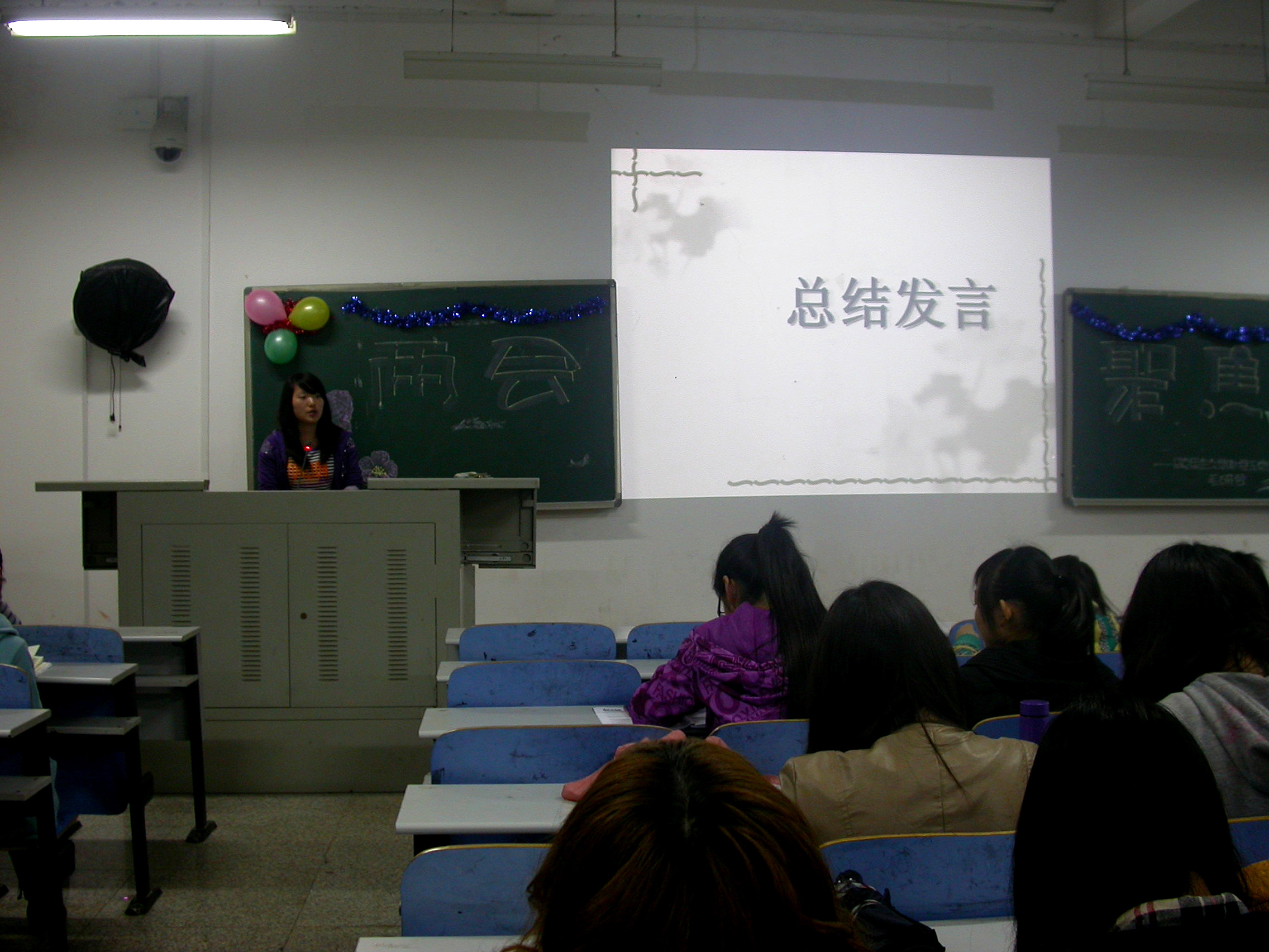 在相对严肃的讨论会后,进入了知识竞答环节,大家你争我夺,所设的题目根本没有把大家难倒,活泼又紧张的抢答将研讨会的气氛推向高潮。轻松的环节后,《歌唱祖国》这首红歌给大家带来了心灵的震撼。最后,副主席周秋云为此次研讨会作总结,“‘有梦想、有机会、有奋斗’要做有理想的人,并为自己的理想而努力奋斗。”她激动的说到。