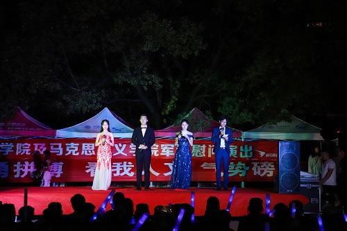 蓝色的荧光棒在空中挥舞,热情的呼喊声此起彼伏,为了慰藉新生们在军训中的辛苦付出,9月19日晚,由永利yl23411暨人文学院联合举办的2019级军训慰问演出在全院新生的期待中在北校区篮球场正式举行。晚会由邹巧巧、姜宝权、窦婉宁、张宇泷主持,人文学院学工办主任马忠石、我院学工办主任刘哲及两院全体教官、新生到场观看演出。