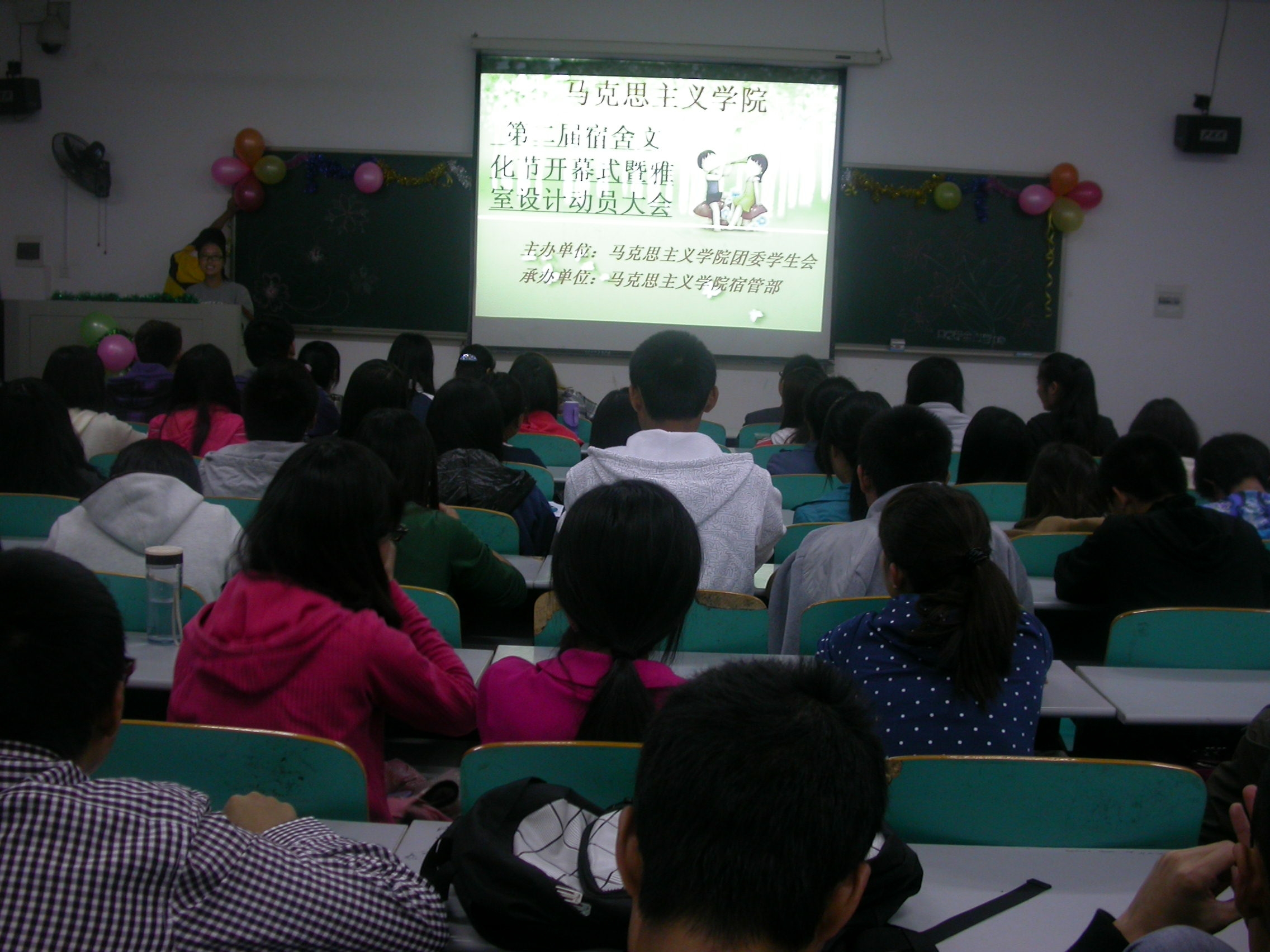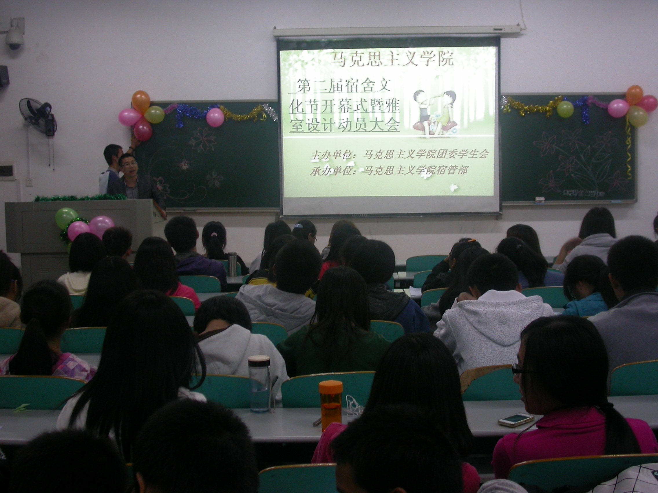 大会一开始,宿管部部长李咪就宿舍文化节的时间安排、奖项设置及活动意义做了介绍。接着,宿管部副部廖姗播放了往届雅室设计的优秀作品,团委第一副书记张慧颖也对雅室设计做了简洁的讲解。
