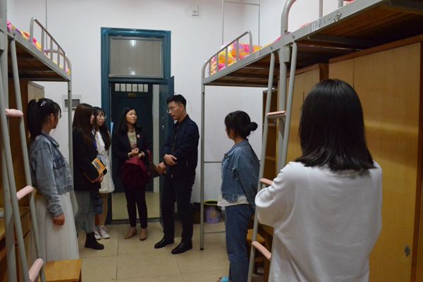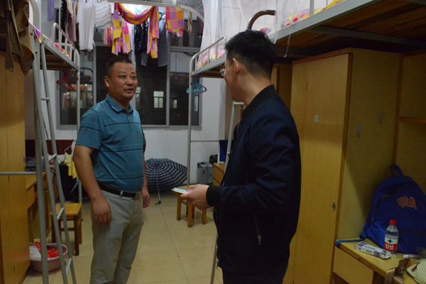 为了加强学院领导老师与新生间的联系,增强对新生的了解。9月25日晚8点,党委副书记莫江平、永利yl23411学工办主任刘哲、新生辅导员钟声以及学生会主席团成员下寝慰问新生,对全体新生宿舍进行细致的走访。