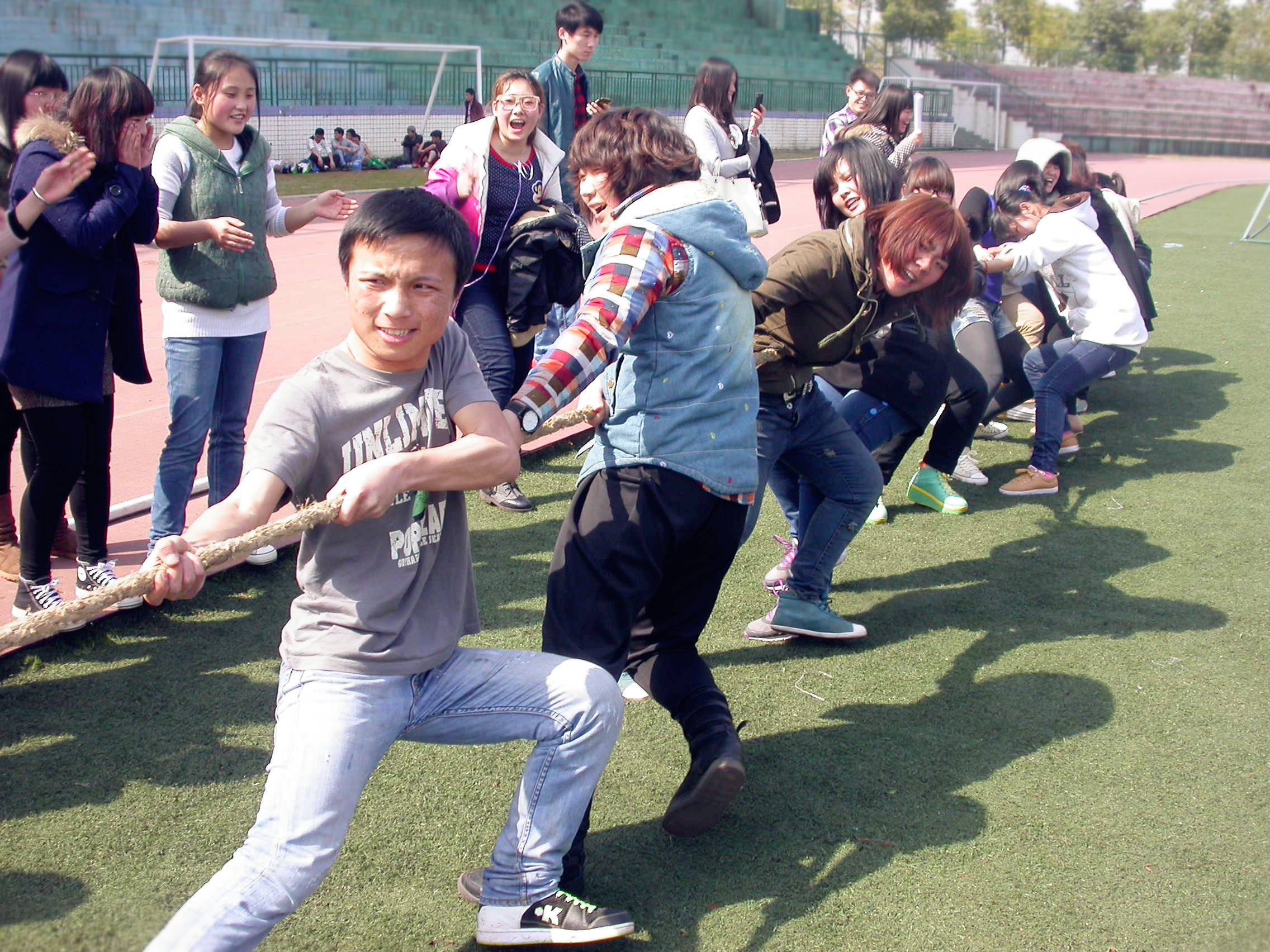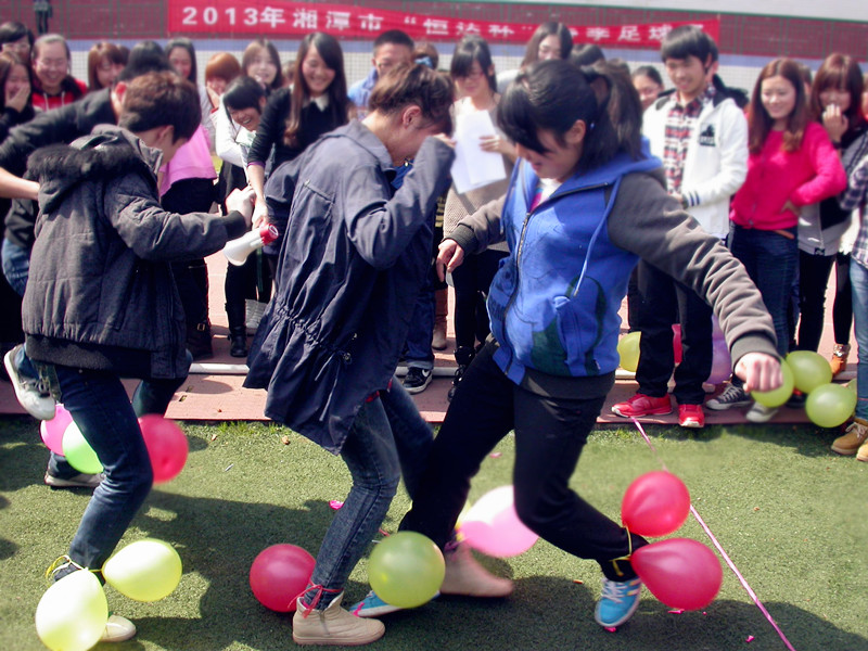 本次活动共有四个内容:踩气球、袋鼠跳跳向前冲、“众志成城”拔河赛以及“女生style”照片评选赛。照片评选赛在3月2日已全部评选完毕。最终的三项比赛于3月5日,在新田径场开展。比赛开始后,各支队伍互不相让,进行着激烈的力量与技巧的较量,气氛紧张而又热烈。队员们相互配合,携手共进。场外的同学们也是“加油”声连成一片,将比赛队员围成一个圈,为他们呐喊助威。拔河比赛中,男女同学互相扶持搭配协作,共同进退。