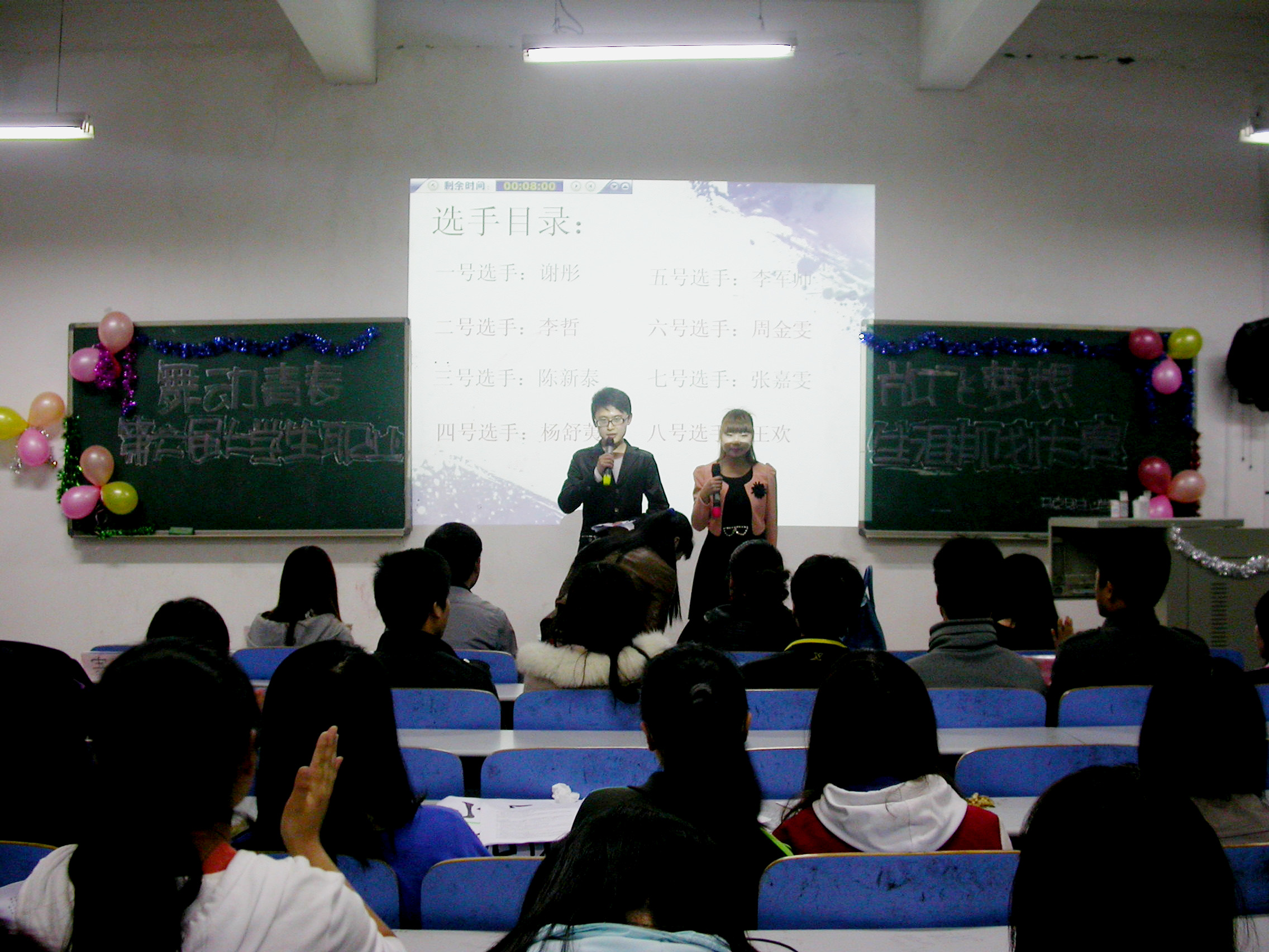 经过初赛的选拔,共有8位选手的作品脱颖而出。选手们依次上台用ppt演示了自己的职业规划。1号选手谢彤自信执着,她相信自己通过努力定能成为一名优秀的西班牙语讲师;2号选手李哲字句铿锵有力,做一名人民公仆——公务员是她不懈前进的动力;3号选手陈新泰希望自己能成为一只有方向的船,在自己的母校做一名政治教师,以此回报他的母校;出身教育世家的4号选手杨舒荑相信自己能在教育事业这片汪洋大海中找到成功的彼岸;沉着稳重的5号选手李军师希望靠自己的踏实努力,从基层做起,在教育行业中占有一席之地;6号选手周金雯心思细腻,她想通过自身的实践,成为一名优秀的社会工作者;7号选手张嘉雯独辟蹊径,做一名西点师,拥有自己的餐厅是她不断前进的方向;8号选手王欢志存高远,成为一名英语口译是她一直的梦想,她会在梦想之路上坚持走下去。