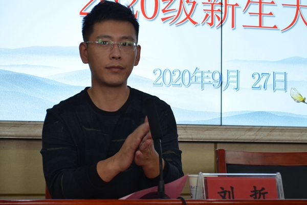 “起来,不愿做奴隶的人们,把我们的血肉筑城我们新的长城!”国歌起,全场起立,开学典礼拉开序幕。会议伊始,党委书记廖加林上台致辞,他首先对新生们的到来表示热烈的欢迎和真诚的祝福。廖加林从抗击疫情出发,肯定了青年一代在这次抗疫中的重大作用,展现了青春激昂的风采,展现了中华民族的希望。他也表示在未来的战役中,大家也将由被保护者转换为保护者,成为保卫世界和平,保卫国家安全、保障人们美好生活的中坚力量。基于青年一代担负的重大使命,他对新生们提出了“三要”:一要弘扬伟大的抗疫精神,从容面对世界风云变幻;二要勤学苦练各种本领,肩负起社会责任;三要有情怀、有底线、谱写人生新篇章。最后,他对20级新生们表达最真诚的祝福,希望他们展现青春的风采,在人生征途中绽放希望。