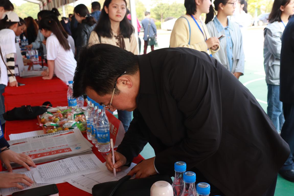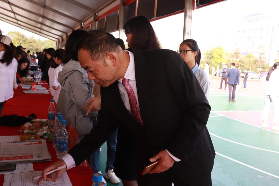 今日的北校田径场格外喜庆热闹,田径场外围位置热气球拉起了红色条幅“求真务实,七十年桃李满天下;革故鼎新,七十年栋梁遍神州”;田径场更有横幅“建设特色鲜明的双一流高校”等标语,传达出湖科人的优良传统作风,以及新形势下改革创新奋勇争先的决心。而田径场外,我院则设置了校友接待服务站,接待到访的各位校友,以期让广大马院校友感受到如家般的温暖。接待站的志愿者们忙碌在各自的工作岗位上,用热情和辛勤服务校庆。校友们在志愿者的引导下,找到自己的毕业级次并签名确认;接着在报到处填写校友信息登记表,留给母校他们最新的信息;然后领取学院赠送的礼品包。完成报到后,校友们就在志愿者的引导下参加由学校举办的创新发展大会,或自行游览校园。