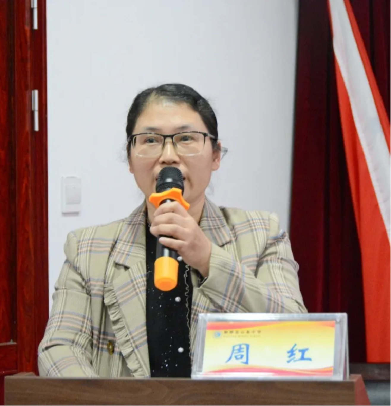 会议第二项,指导教师代表周红发言。周红老师肯定了实习老师们爱岗敬业、团结协作、持续学习、积极沟通的精神,赞扬他们将理论应用于实践,勇于挑战自我,拥抱机遇,在一个多月里实现了显著成长。她期待实习老师们在未来的教育旅程中继续发光发热,谱写新的篇章。