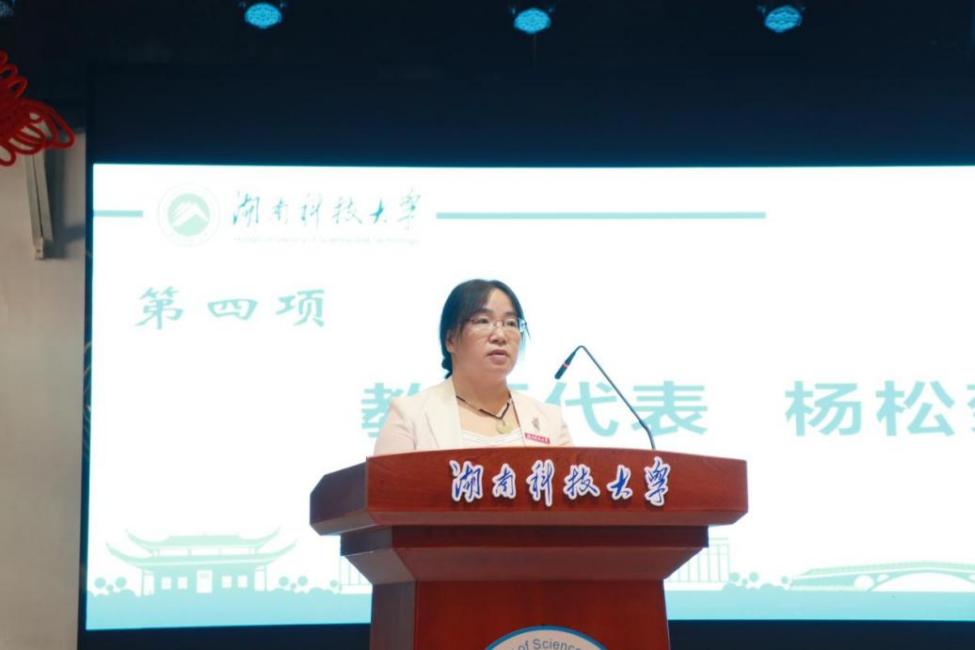 ▲教师代表杨松菊老师发言