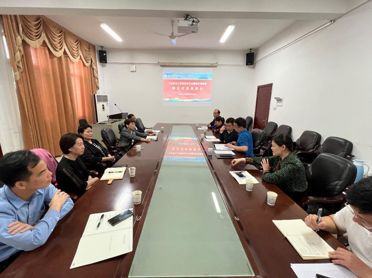 会议伊始,韩平副院长就科研成果以及学生规模等方面向优秀校友讲述了我院近年来的快速发展历程,并通过介绍师生宣讲团展示了我院不断扩大的影响力。随后,宋劲松副院长与黄爱英副院长从我院培养体系以及学科建设的优秀成果入手,介绍我院近年来取得成果,并在会上与大家交流了大中小思政课一体化课程体系建设的重要性,提出了思想政治专业的培养在新阶段有更高要求,以此提议我院及校友双方可以通过案例分析、教研论文集等多种方式合力推动思政课创新发展与资源共享,落实师资力量的培养与对接。谈及交流合作,院党委副书记刘图其希望在座校友为院史馆、马院校友分会筹建以及在各个地区成立马院校友会献计献策,建立QQ、微信群,推动该项工作落实。