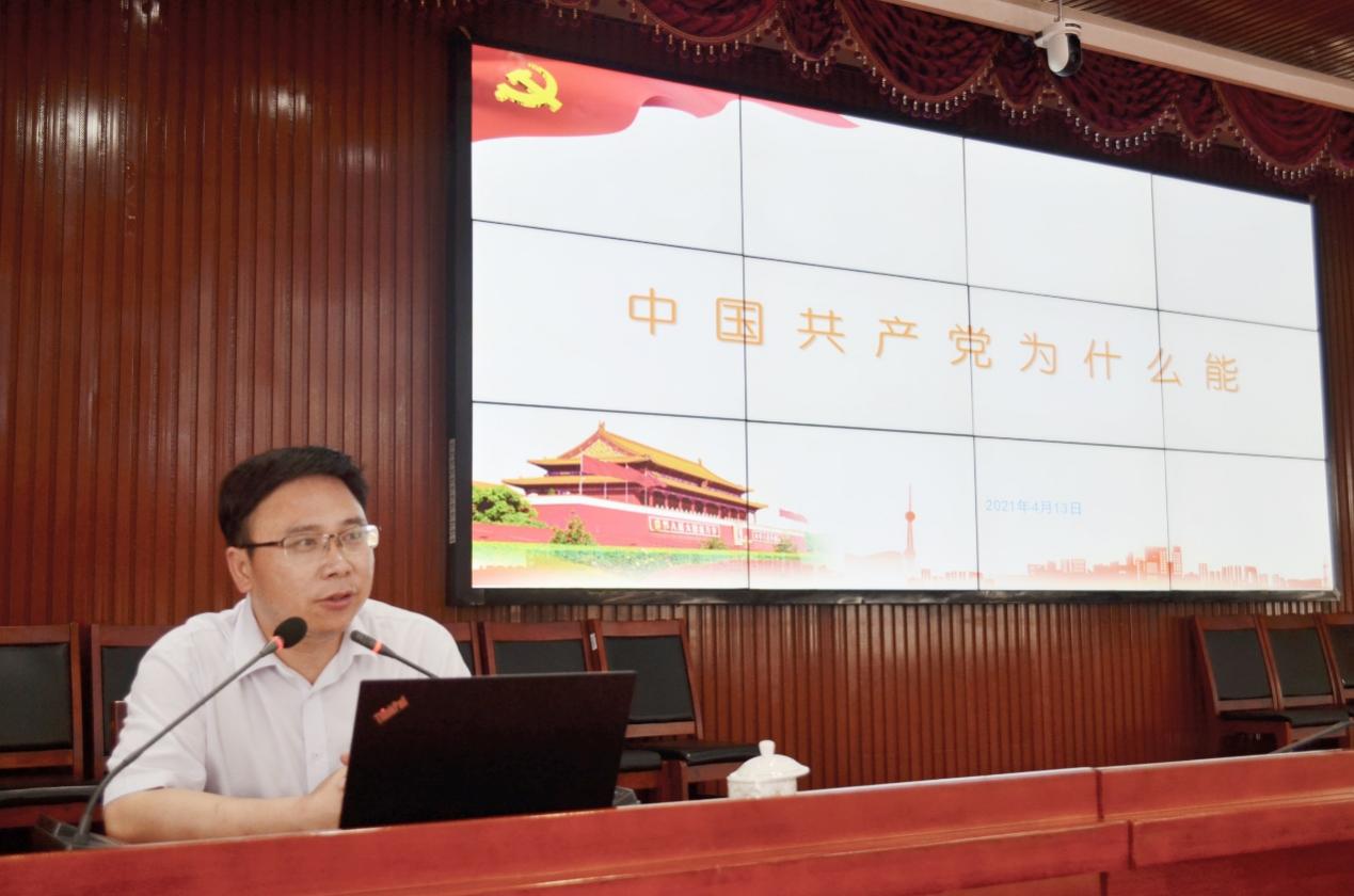 6月22日上午,校纪委书记郭时印以“中国共产党为什么能”为主题,在立德楼五楼报告厅生命科学学院20级学生上了一堂“形势与政策”专题思政课。铃声响起,在同学们一声热情的“老师好”之后,郭时印开始了本堂课的讲授。