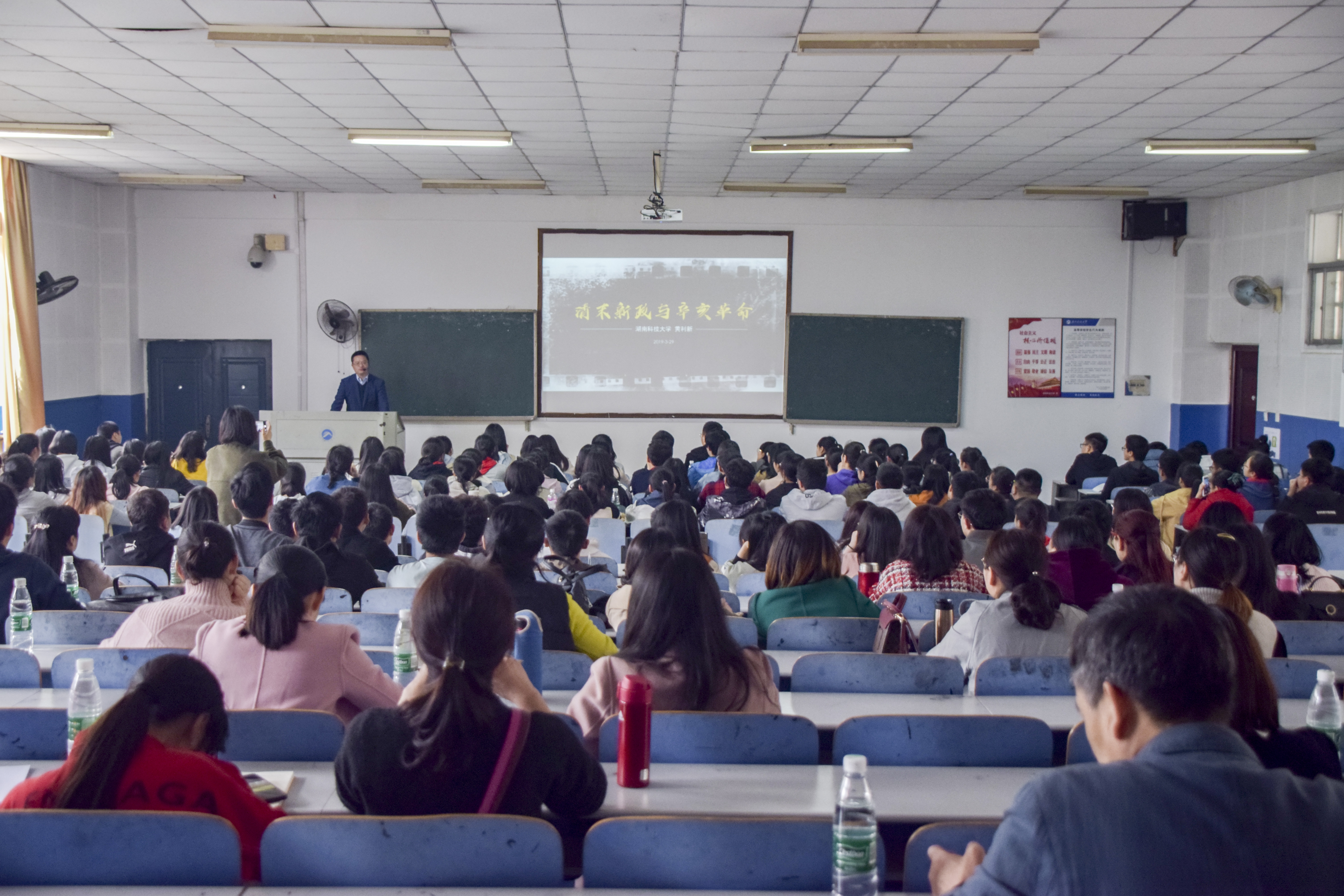 今年开放式课堂培训第一期的主题是《清末新政和辛亥革命》。 革命是20世纪中国发展一个重要主题,无论是传统帝制倒塌,中华民国的建立,还是1949年新中国的建立,都得益于革命。但受历史虚无主义的影响,社会上流传“告别革命”错误的思潮,就辛亥革命而言,他们认为“清朝虽然已是一个空壳子,但是这个形式还是有其存在的必要,如果慢慢来,用当时立宪派所主张的改良的方法,或许能迫使它实现现代化”,“辛亥革命只是一种破坏性的力量,它破坏了一种政治框架之后,并没有提供新的政治框架”。为批判“告别革命论”,黄利新详细地分析清末新政中军事、经济、教育、政治的各项措施,指出清末各项新政措施大都是有利于我们这个民族和国家的发展,但这些措施使清王朝丧失了军人、知识分子、资产阶级、农民、汉族地主的支持,人们惊讶的发现凡是对国家、民族有利的东西,对清王朝都是有害的,这充分说明了当时清王朝已经成为我们这个国家和民族前进道路上的绊脚石,改良不可能取得成功,辛亥革命的发生是历史必然。紧接着,黄利新讲述了以孙中山为代表的资产阶级革命党人领导的辛亥革命始末,着重分析了资产阶级革命纲领“三民主义”和讲述了武昌起义的来龙去脉、对封建帝制的覆灭和辛亥革命的意义进行了重点讲解,从不能建立一个坚强的革命政党、三民主义的理论缺陷、没有充分发动人民群众三个角度分析了辛亥革命失败的原因。通过分析,黄利新指出辛亥革命的失败表明,资产阶级共和国的方案没有能够救中国,先进的中国人需要进行新的探索,为中国谋求新的出路。课堂最后,黄利新老师再次强调“告别革命”是历史虚无主义的一个重要表现,当代大学生要避免历史虚无主义错误思潮的影响,就要用历史唯物主义思想来武装我们的大脑。 在交流研讨环节,吴怀友表示,习近平总书记在学校思想政治理论课教师座谈会上强调了思政课的作用不可替代,思政课教师队伍责任重大。他强调,思政课不仅仅是历史教育,更是思想教育和政治教育,思想政治理论课教师要切实增强思政教育的感染力和吸引力,不断提高思政课的思想性、理论性、针对性和亲和力。会上他着重肯定了黄利新的课堂,他表示,黄利新的课堂坚持了建设性和批判性相统一、反对历史虚无主义、“告别革命”等思潮,“破”“立”结合,引导学生树立正确的理想信念,学会辩证唯物主义和历史唯物主义。吴怀友呼吁各高校教师积极交流,共同致力于提高新时代思想政治理论课教学水平。湖南大学教师王萌萌则表示,黄利新的课堂引用了丰富的历史事实,史料全面,论述清楚完整,并将结论提高至理论高度,具有很强的学术性。“黄利新具有问题意识,由问题引出课堂的授课方式使内容导向更加明确。”湖南理工学院教师高文学谈道。他认为,黄利新将纲要教材中结论式的知识以丰富真实的史料呈现,不仅能佐证书本的观点,更开拓了学生的视野。“黄利新老师讲述的历史十分生动有趣,内容衔接性很好,易于理解。”18级物理与电子科学学院物理一班的陈育优谈道。他认为,在“上帝视角”的概念中,不应该盲目批判某一段历史,而应该客观地吸取失败教训或是积累成功经验。