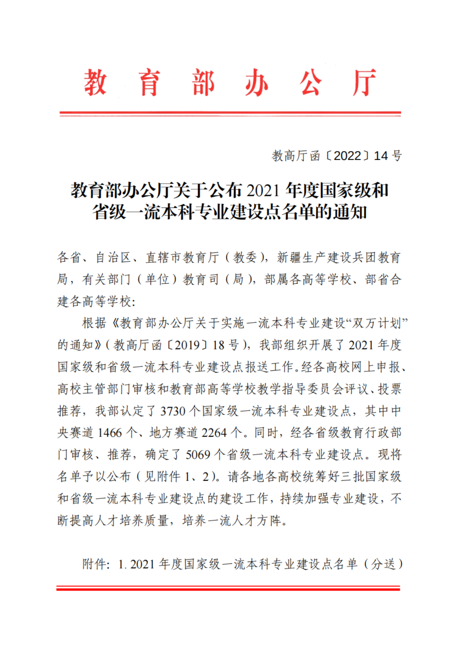 近日,教育部发布《关于公布2021年度国家级和省级一流本科专业建设点名单的通知》(教高厅函〔2022〕14号),我院思想政治教育专业获批国家级一流本科专业建设点。