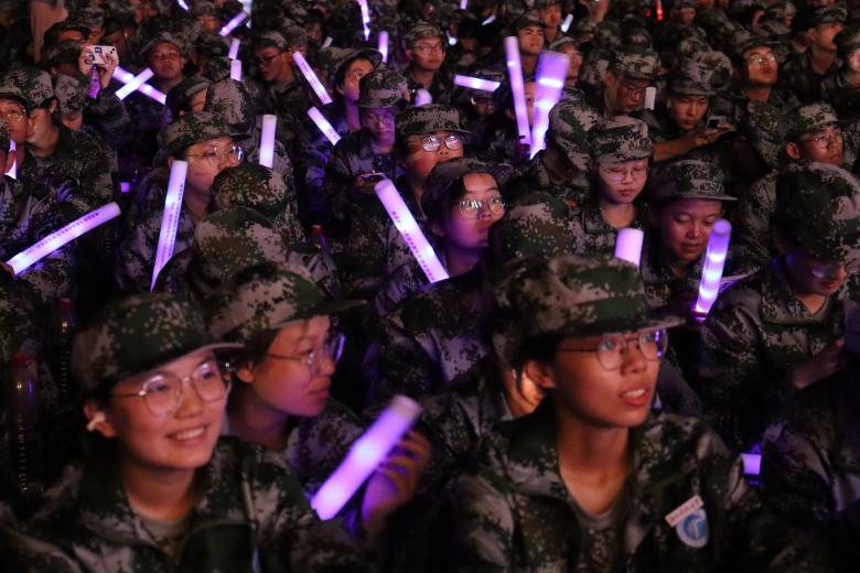 ▲新生现场观看