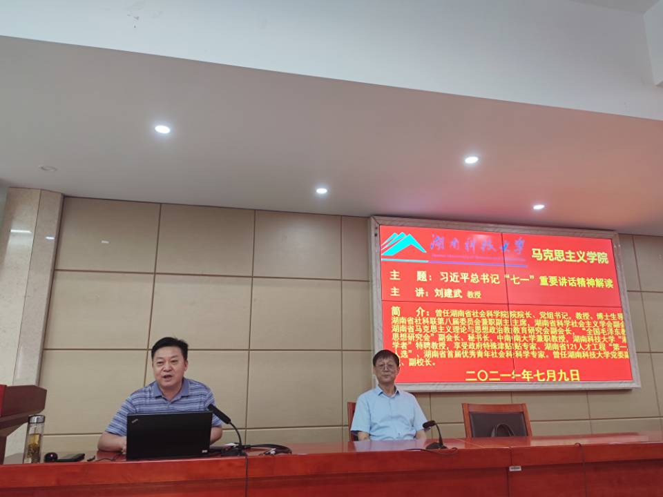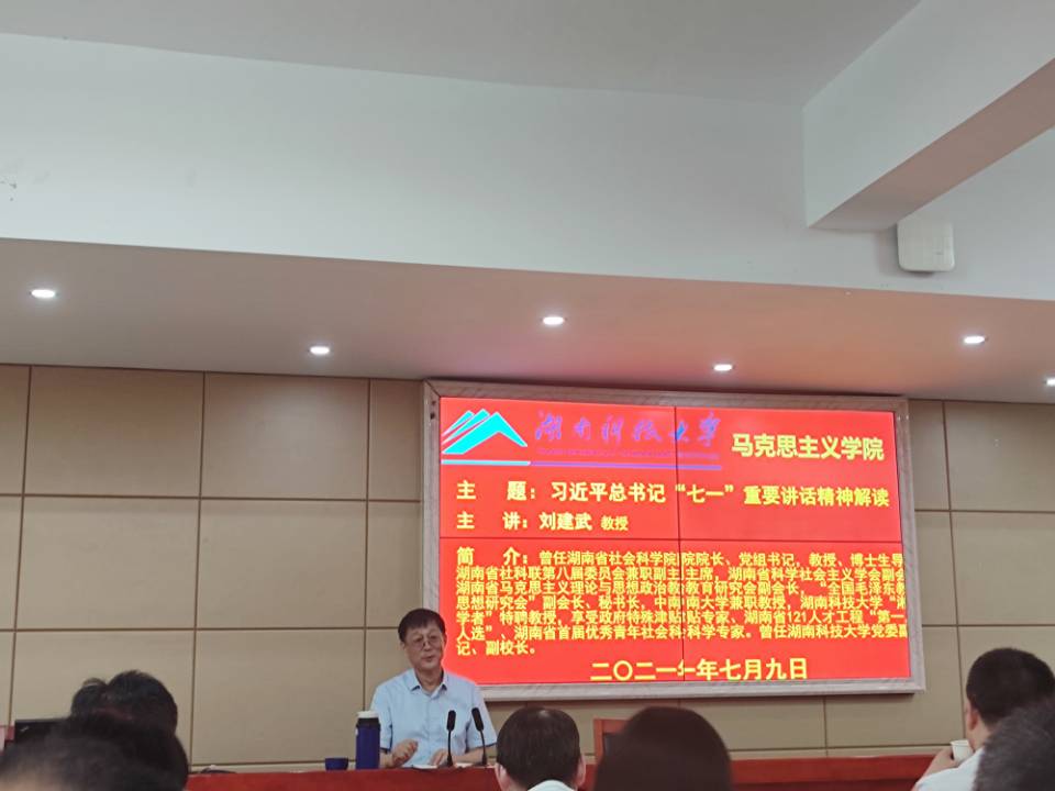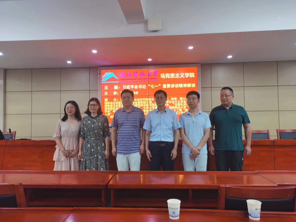 为深入学习领会习近平总书记“七一”重要讲话精神,我院于7月9日上午召开学习贯彻习近平总书记“七一”重要讲话精神报告会,我校“湘江学者”特聘教授、出席在北京召开的庆祝中国共产党成立100周年理论研讨会、亲耳聆听习近平总书记“七一”讲话的刘建武教授作学习传达、专题辅导报告。报告会在立言楼5-1举行,永利yl23411院长吴怀友教授主持,永利yl23411全体教师和在校研究生百余人参会。