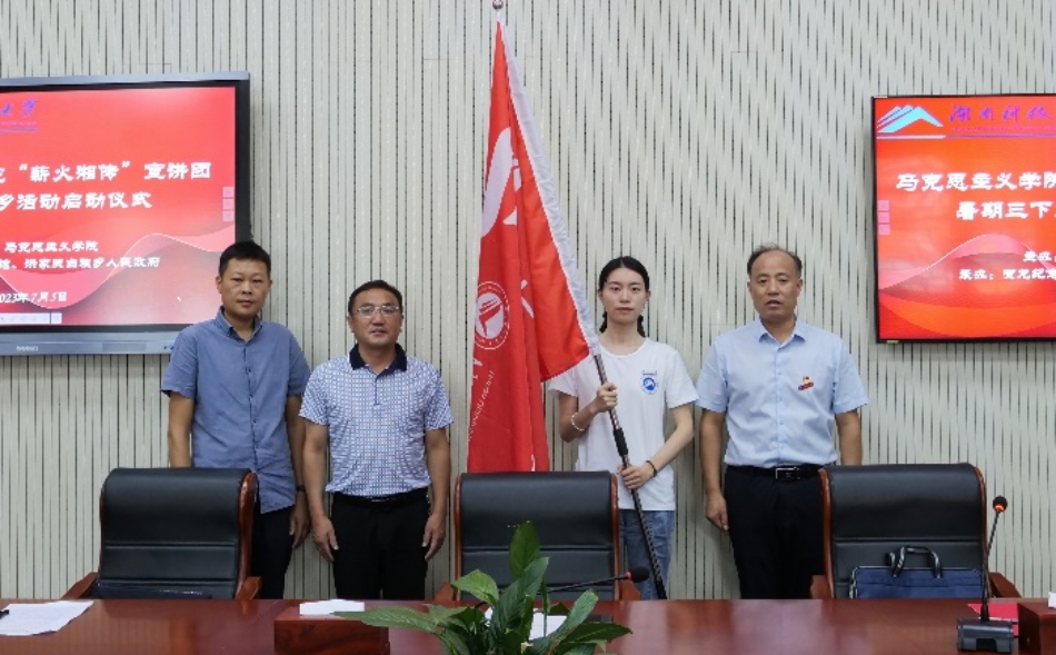 7月5日上午,永利yl23411“薪火湘传”理论宣讲团“三下乡”社会实践活动启动仪式在洪家关白族乡文博楼会议室举行。贺龙纪念馆馆长张先政、学院党委副书记刘图其、洪家关白族乡乡长王先政、贺龙纪念馆主任向军以及洪家关白族乡党政班子及其相关干部出席了本次活动。