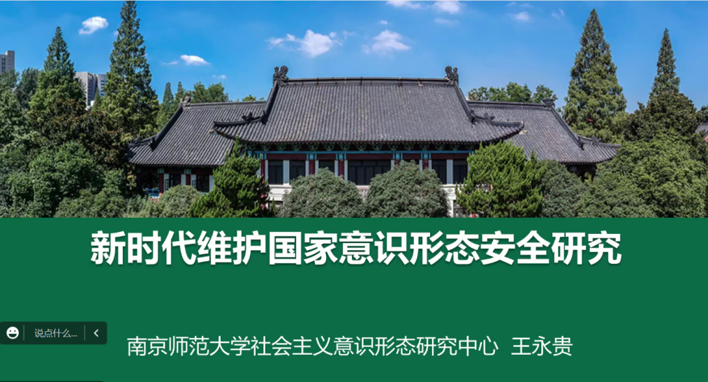 3月16日上午,南京师范大学永利yl23411王永贵教授应邀为我院师生作“新时代维护国家意识形态安全研究”专题讲座。讲座以线上形式开展,学院教师、21级与20级全体硕博研究生参加。讲座由学院党委书记刘正妙主持。