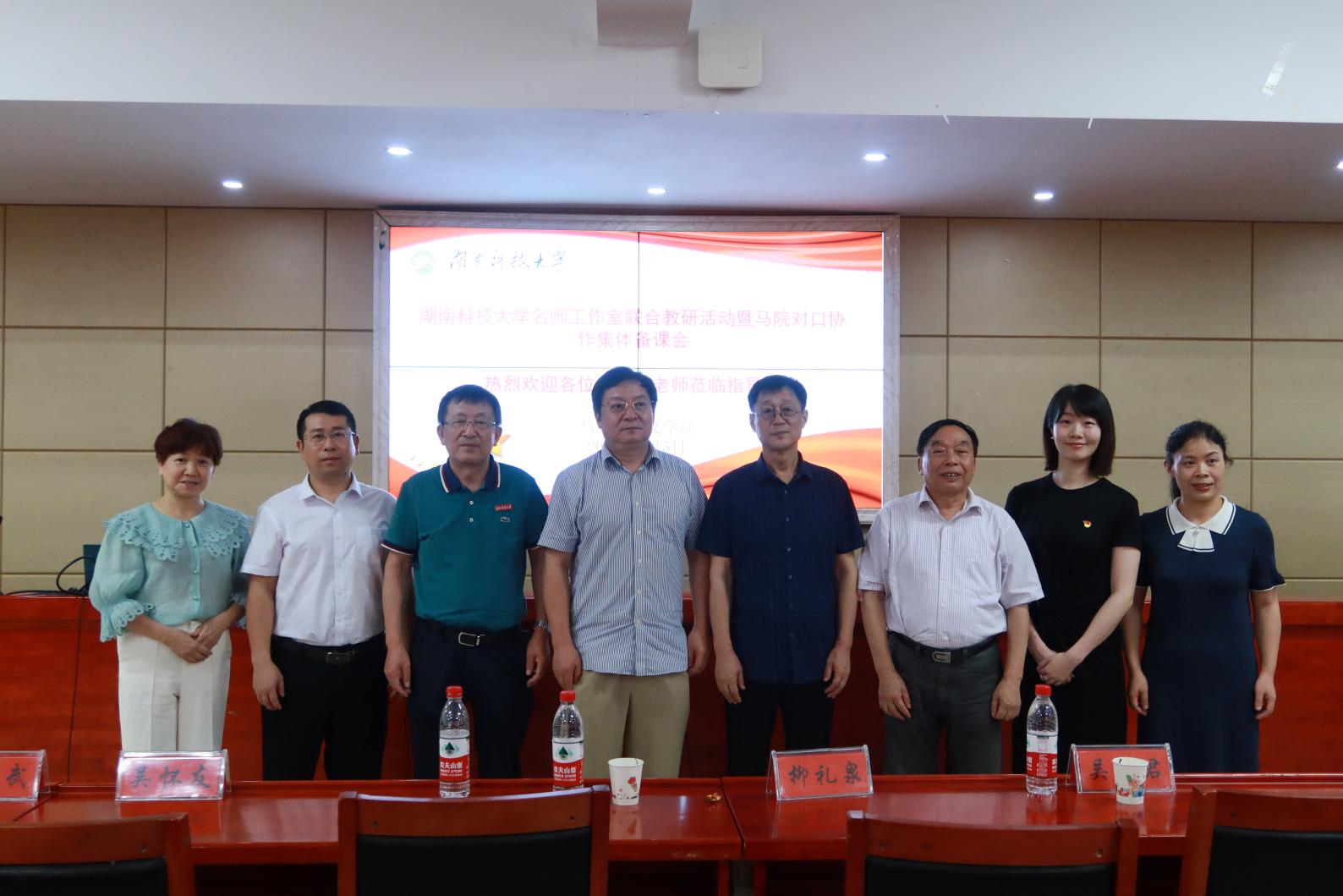 湖南科技大学名师工作室“学习习近平总书记考察中国人民大学重要讲话精神”暨马院对口协作集体备课会于7月5日上午举行。此次活动由全国高校思政课名师工作室(湖南科技大学)负责人吴怀友教授牵头,湖南省高校思想政治工作名师工作室(湖南科技大学唐亚阳、吴怀友、吴毅君、颜柯)以及马院对口协作单位(湖南科技大学马院、长沙学院马院、湖南汽车工程职院马院)的思政课教师参加。