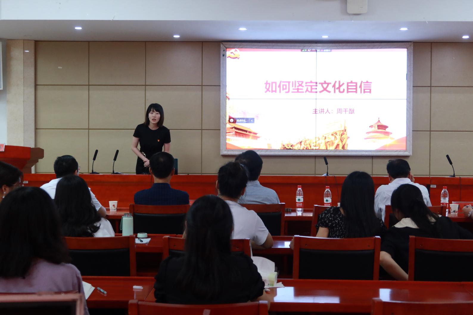 周千猷博士以《如何坚定文化自信》为主题,从“不忘本来”“吸收外来”“面向未来”角度,提出新时代坚定文化自信的有效路径,认为要坚守中华文化立场,走中国特色社会主义文化发展道路,打造中华民族共有精神家园,并鼓励新时代大学生为繁荣发展社会主义文化做贡献。柳礼泉教授肯定了周千猷博士的教学展示,认为所展示内容的材料选取丰富且合理,较好地贴合了学生的实际,能够有效达到教学目的。