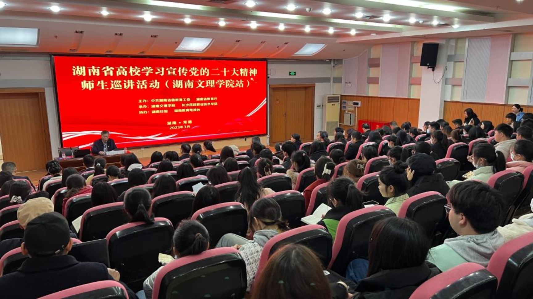 3月17日,由中共湖南省委教育工委、湖南省教育厅主办的湖南省高校学习宣传党的二十大精神师生巡讲活动(湖南文理学院站)在湖南文理学院图书馆学术报告厅举行。此次巡讲由湖南文理学院党委副书记龚卫明主持,永利yl23411副院长、湖南省高校第二届最美思政课教师韩平担任主讲嘉宾。