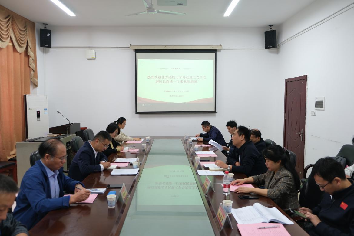 10月20日上午,北方民族大学永利yl23411副院长高炜、思想政治教育本科教研室主任王萍及教师代表一行五人来访我院调研交流。我院副院长薛光远、马克思主义理论一级博士点点长朱春晖、学科思政硕士点点长丁桂馨、习近平新时代中国特色社会主义思想概论教研部主任周建华、思想政治教育系主任凌应生、形势与政策教研室主任伍安和教务办公室主任吴巧玉出席调研交流会。