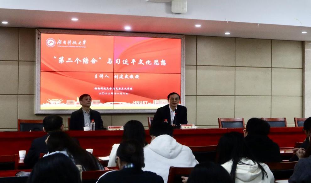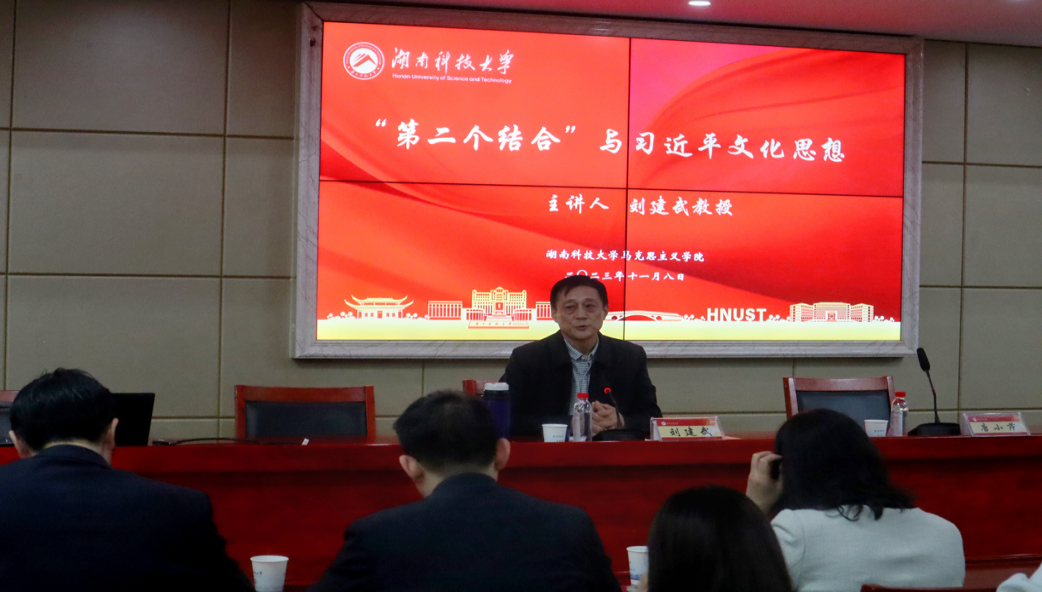 11月8日晚,湖南省社会科学院原院长、我校特聘教授刘建武在立言楼A5-1报告厅为我院师生作题为“‘第二个结合’与习近平文化思想”的学术讲座。讲座由唐小芹院长主持,我院部分教师及22级、23级硕博士研究生参加。