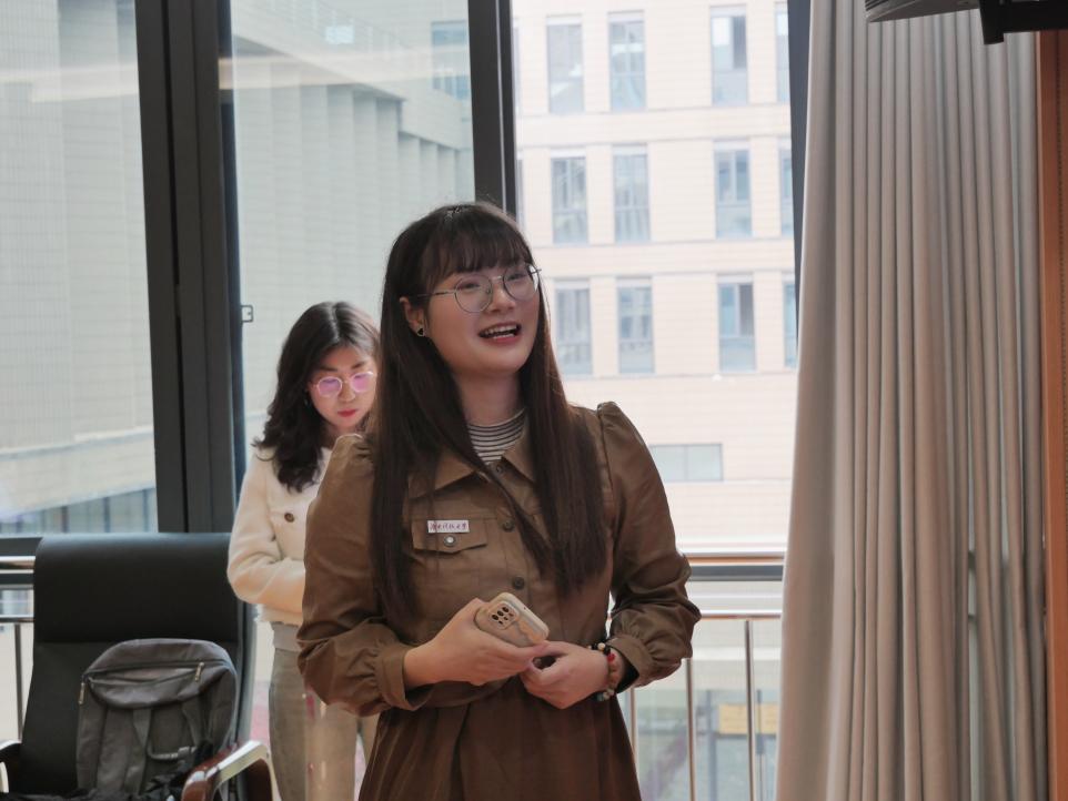 图为碧泉书院·哲学与历史文化学院研究生会学术部丘燕如发言