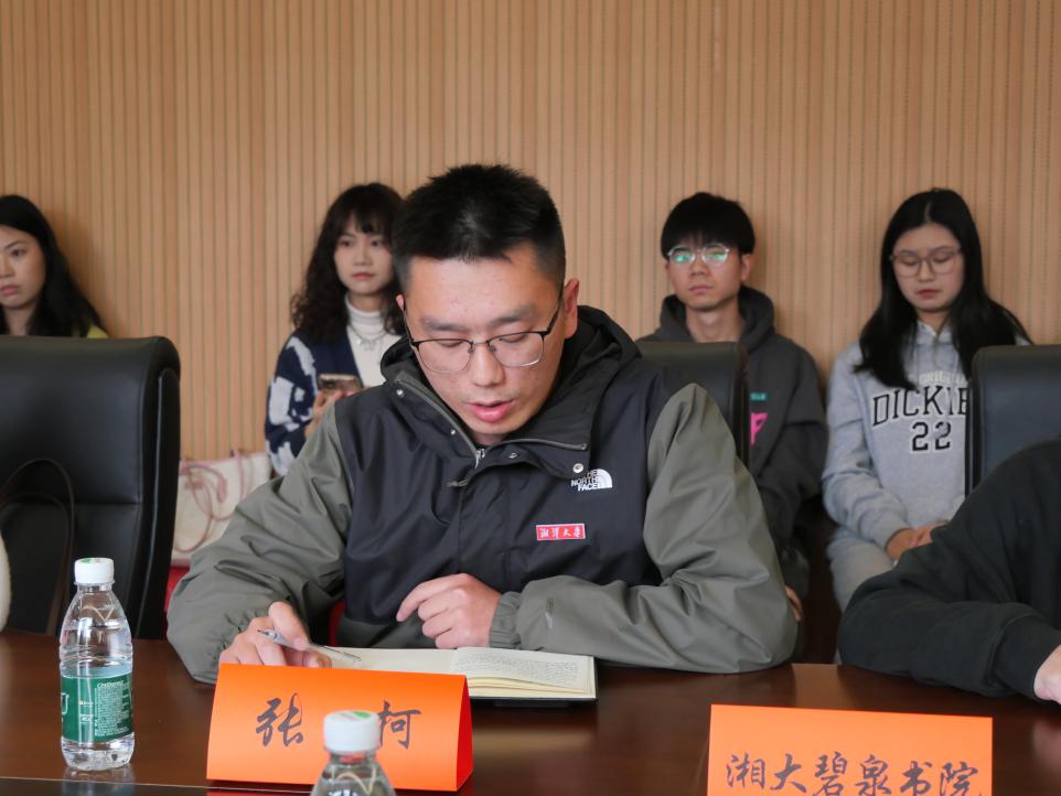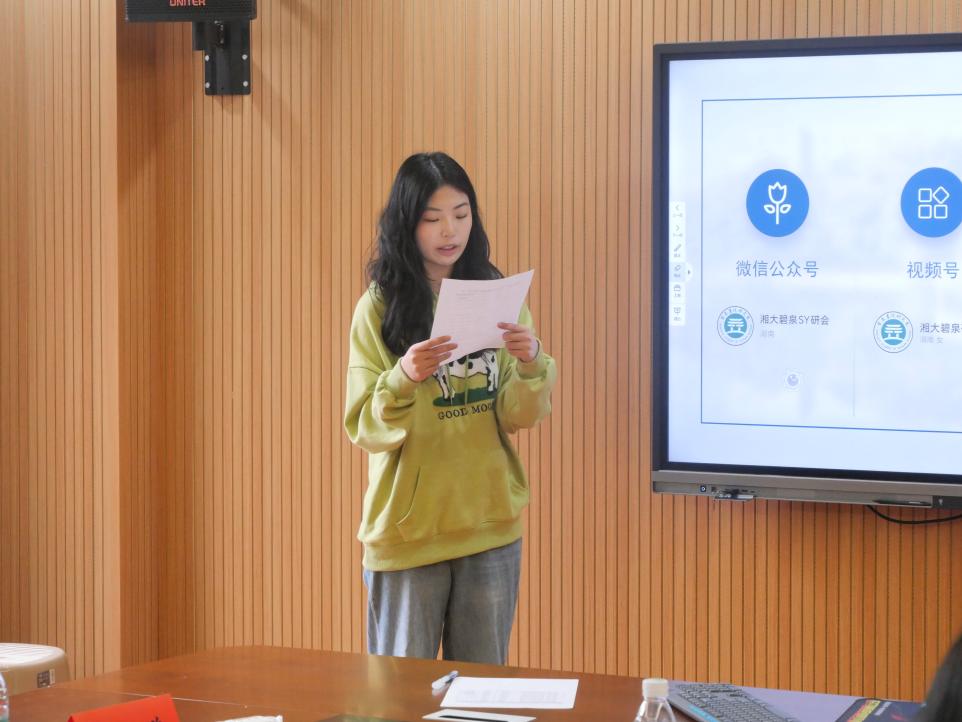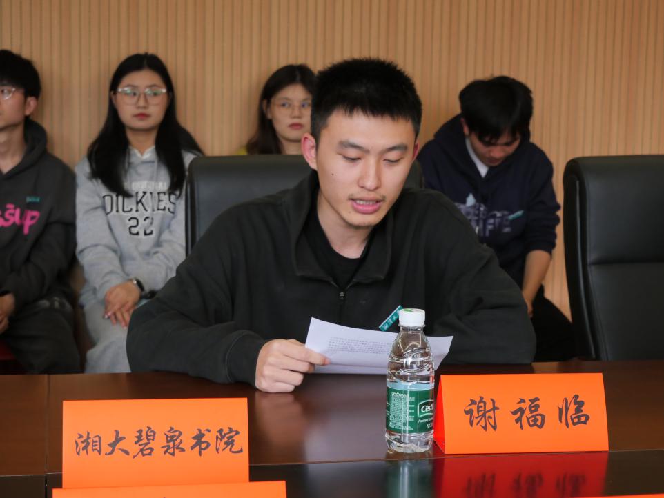 图为碧泉书院·哲学与历史文化学院研究生会办公室王文华宣传部仇柳发言