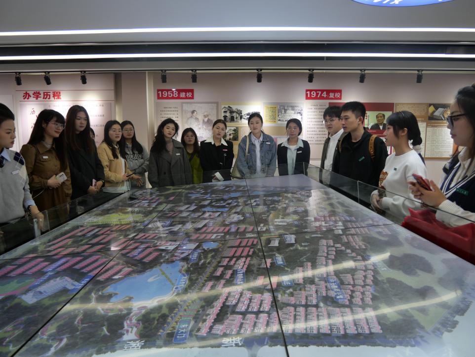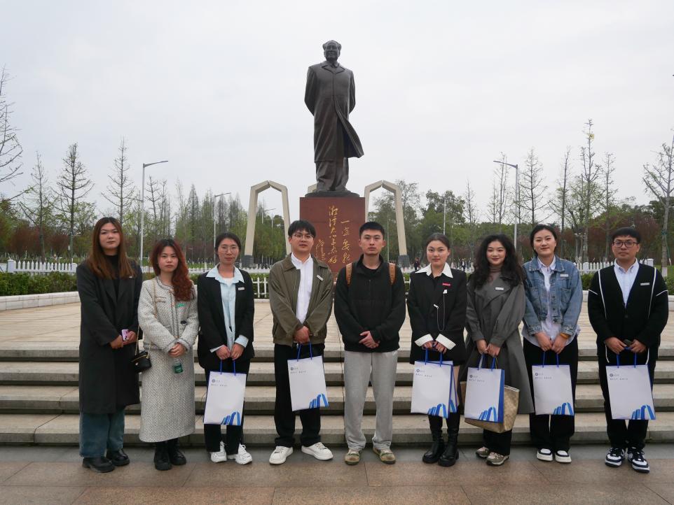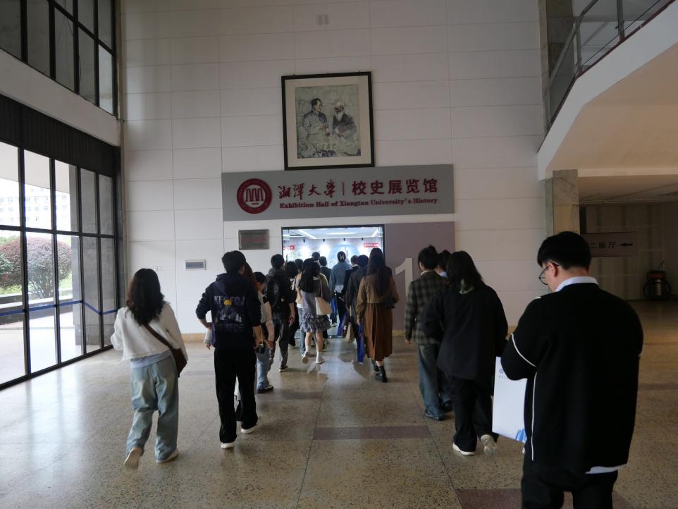 座谈会结束后,全体成员乘坐校车观赏湘大美丽风光、参观湘潭大学校史馆、瞻仰毛泽东铜像、打卡碧泉书院老办公楼。