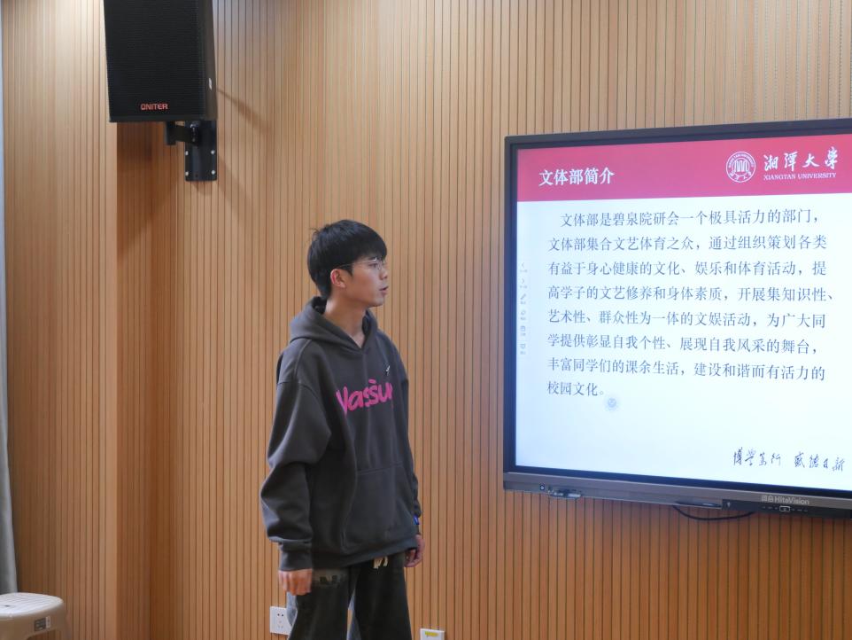 图为碧泉书院·哲学与历史文化学院研究生会办公室文体部魏笃成发言