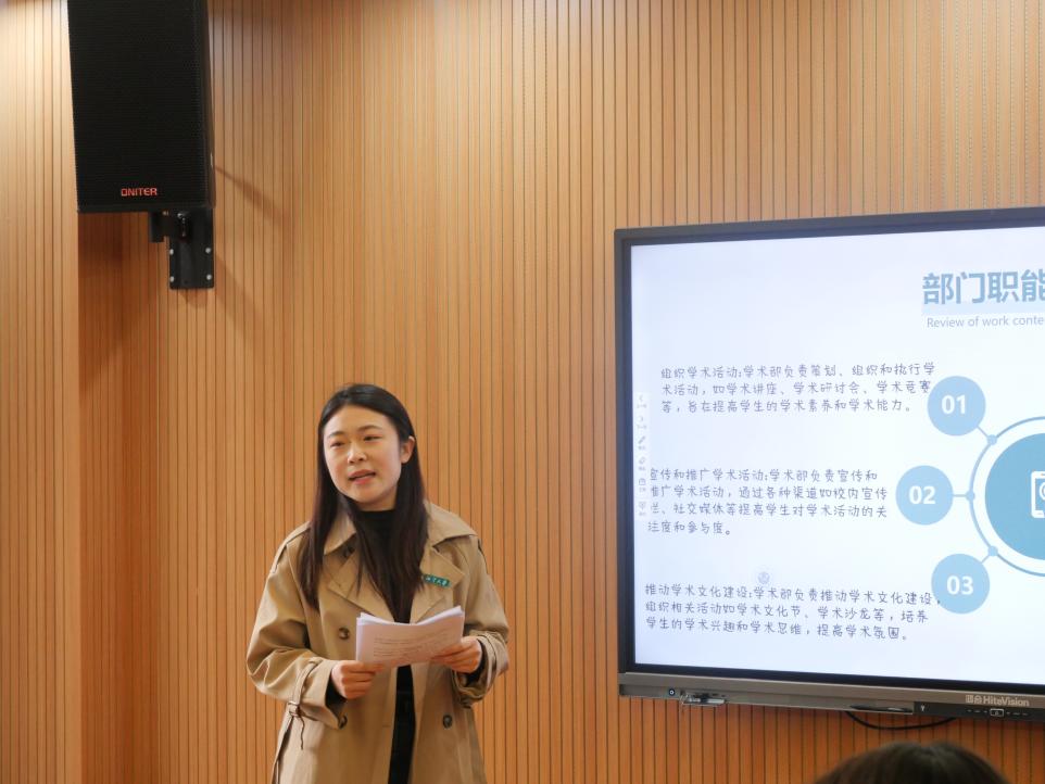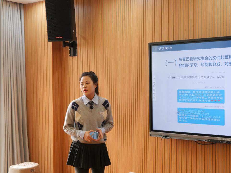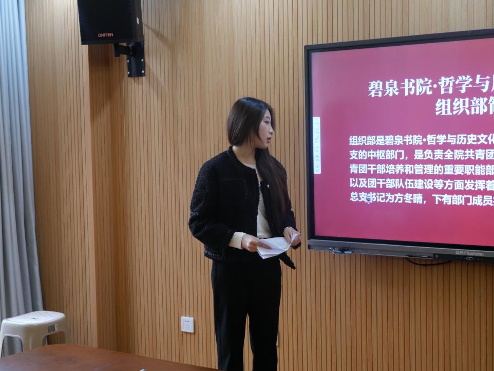 图为碧泉书院·哲学与历史文化学院研究生会组织部高梦璟发言