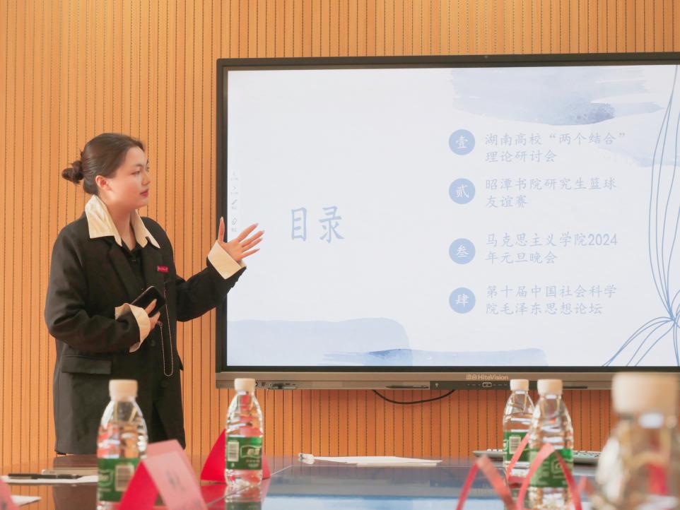 图为湖南科技大学马院研究生会副主席李姝琪发言