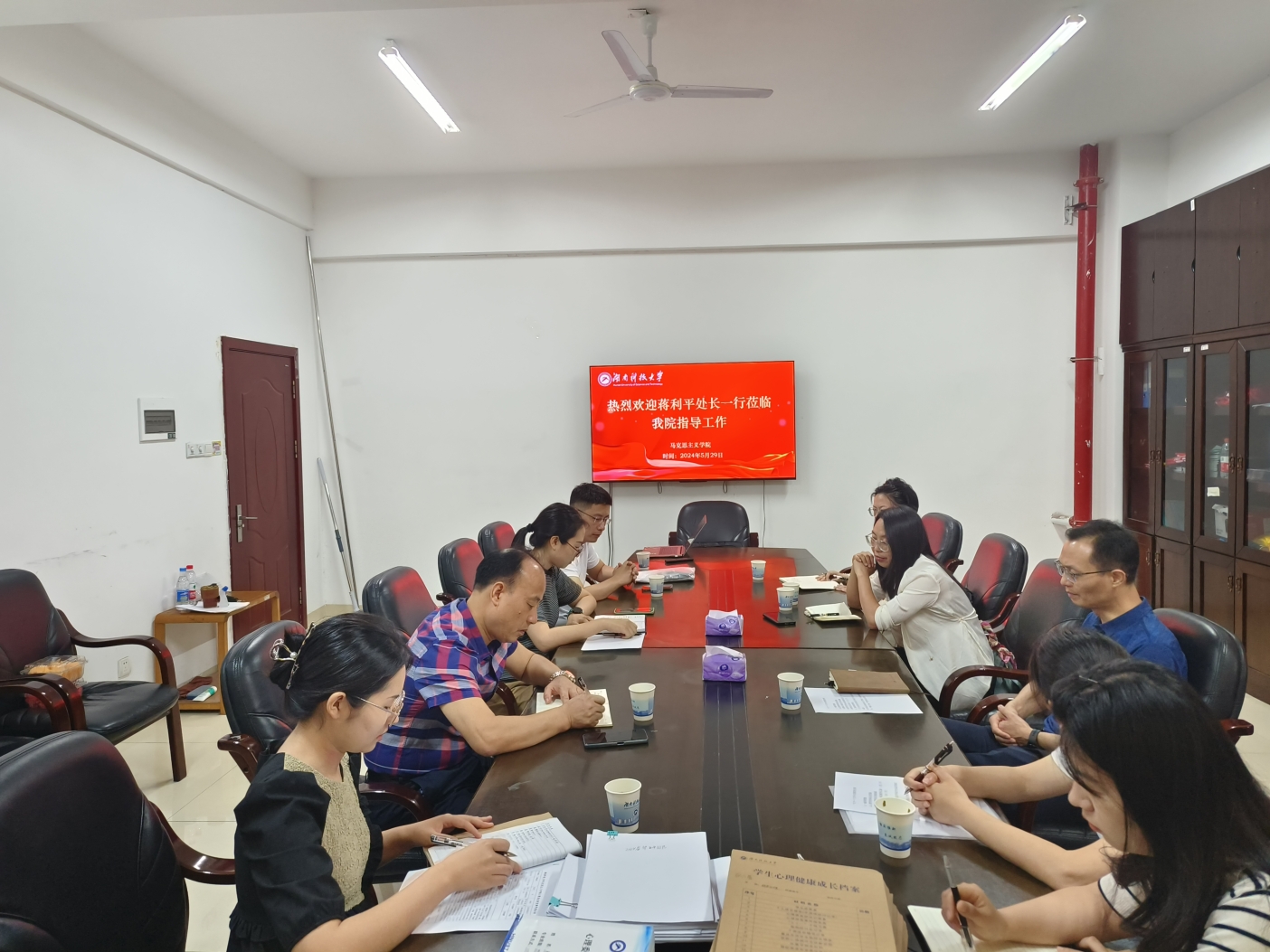 5月29日,学工处处长蒋利平,心理健康中心主任刘云峰,心理专干廖金花、蒋怡丹、王婧怡对学院心理健康工作开展调研与指导,院党委副书记刘图其以及我院全体辅导员与会。