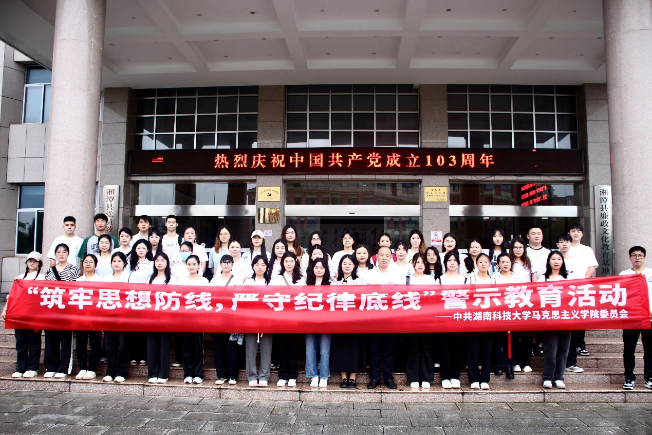 随着中国共产党成立103周年的来临,6月29日,我院组织学生党员赴湘潭县廉政文化教育基地,开展“迎七一 争做合格党员”廉洁主题教育活动,激励广大学生党员干部不忘初心、牢记使命,砥砺前行。