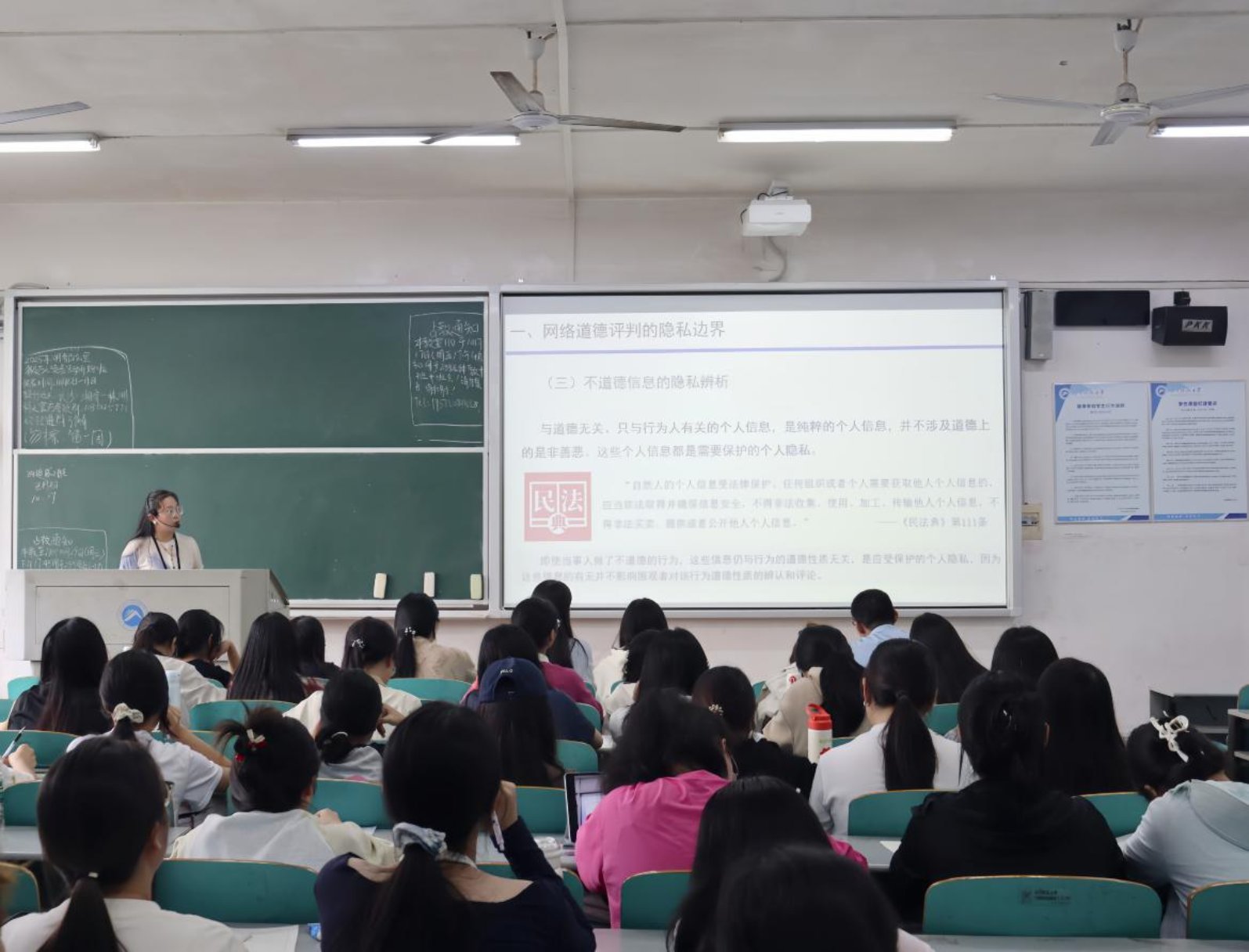 10月17日下午,湖南科技大学课程思政示范课第九十六讲在九教110开讲。本场示范课由永利yl23411承办,吕幸星博士主讲,授课课程为《网络思想政治教育》,授课主题为“网络道德评判的合理边界”。永利yl23411及其他学院教师代表、思政专业部分同学参加了本次活动。