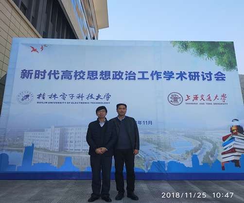 为纪念改革开放40周年,深入总结高等教育新形势下“三全育人”的实践与探索,加强习近平新时代中国特色社会主义思想的研究,2018年11月25日,由上海交通大学永利yl23411和桂林电子科技大学永利yl23411共同主办的“新时代高校思想政治工作”学术研讨会在桂林电子科技大学举行。来自中国人民大学、浙江大学、中山大学、首都师范大学、河海大学、上海师范大学、河北大学、湖南科技大学、桂林理工大学等高校的20多位专家学者围绕“习近平新时代中国特色社会主义思想与新时代‘三全育人’”的会议主题展开热烈的研讨。