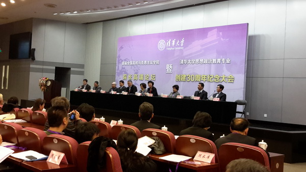上午的会议还举行了“社会主义核心价值观协同创新中心”的揭牌仪式,和《信仰.信念.信心——清华学子学习思想政治理论课成果丛书》、《高校马克思主义理论学科发展报告(2013)》首发式。