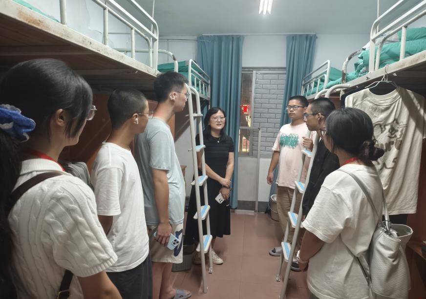 走访中,唐小芹与新生们围坐畅谈,仔细询问报到入住情况及行程是否顺利,鼓励大家积极参与学院活动,尽快完成从“新生”到“学子”的角色转变。