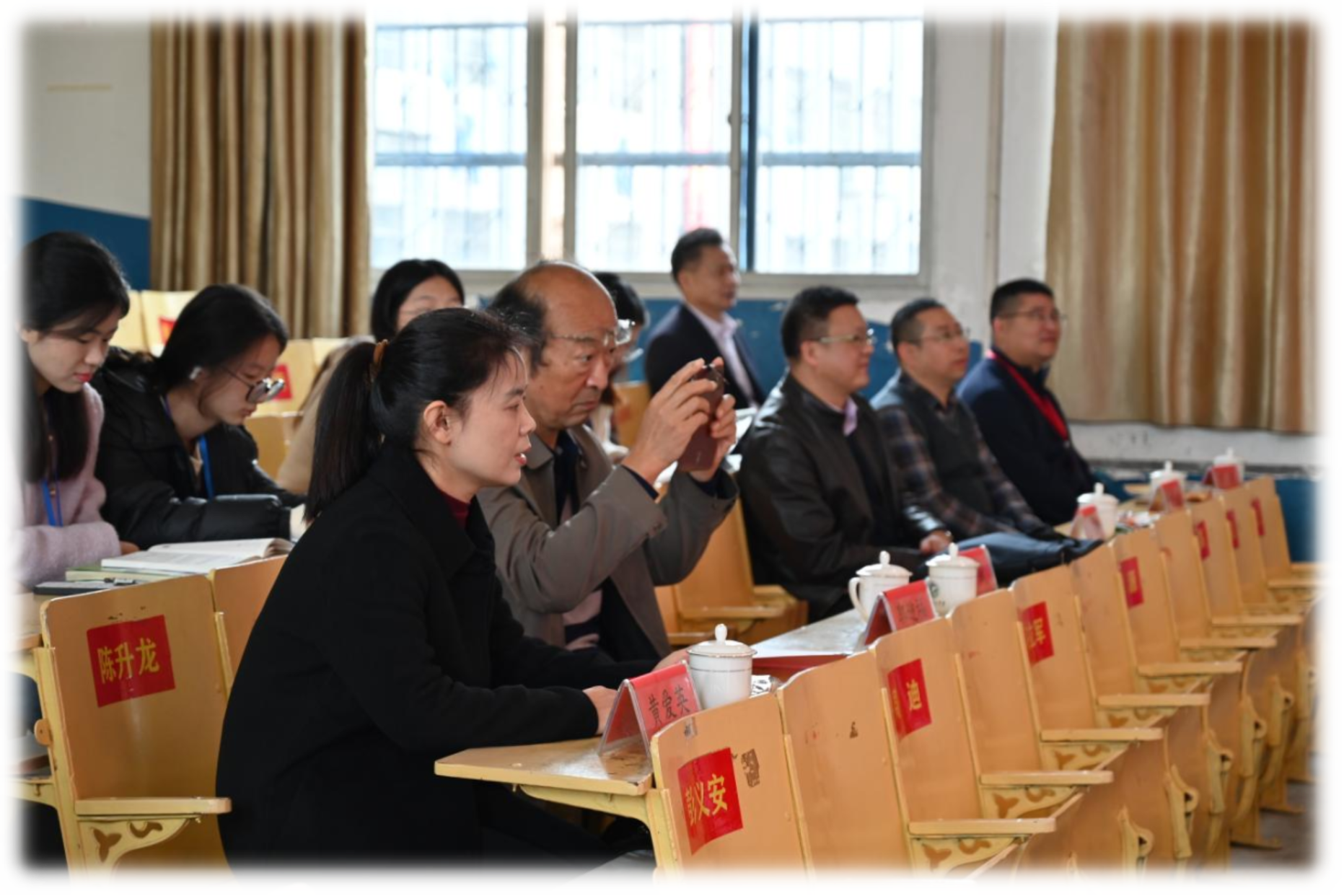 湖南科大马院副院长黄爱英教授、本科教学督导郭迎福教授,驻校实习带队教师吕开武、李育军,与湘潭县二中党总支书记文海石、校长任见,以及两校思政课教师、实习队成员等共同参与,共商育人良策,共话协同发展。