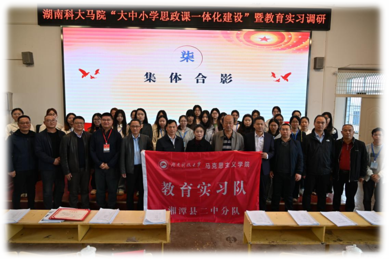 一场相遇,凝聚育人共识;再度携手,开启崭新征程。此次活动以实践探索与协同创新为双轮,为校地合作推进思政课一体化建设探索出新范式。未来,湖南科大马院与湘潭县二中将以此为新起点,持续深耕课程联建、师资联动、资源联通,让思政教育同频共振,共同绘就“为党育人、为国育才”的时代画卷。