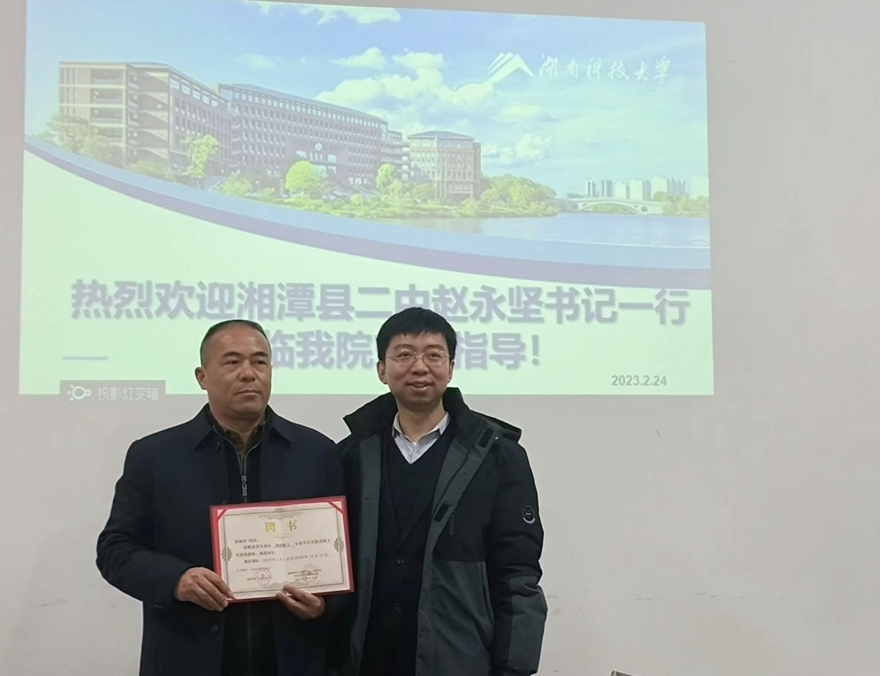 最后,刘正妙书记做总结发言。他指出我校永利yl23411自建院以来,所实现的跨越式发展和丰硕的育人成果,离不开“马院思政人”育人为本、刻苦钻研的精神,更离不开社会各方对我院的大力支持。本次座谈会的举办,为我院与实习基地良性互动,协同发展提供了有益经验,同时也为下一步深化与湘潭县二中的深度合作开了好头。随后,刘正妙书记代表学院为张炳华老师颁发专业型研究生实践导师聘书。