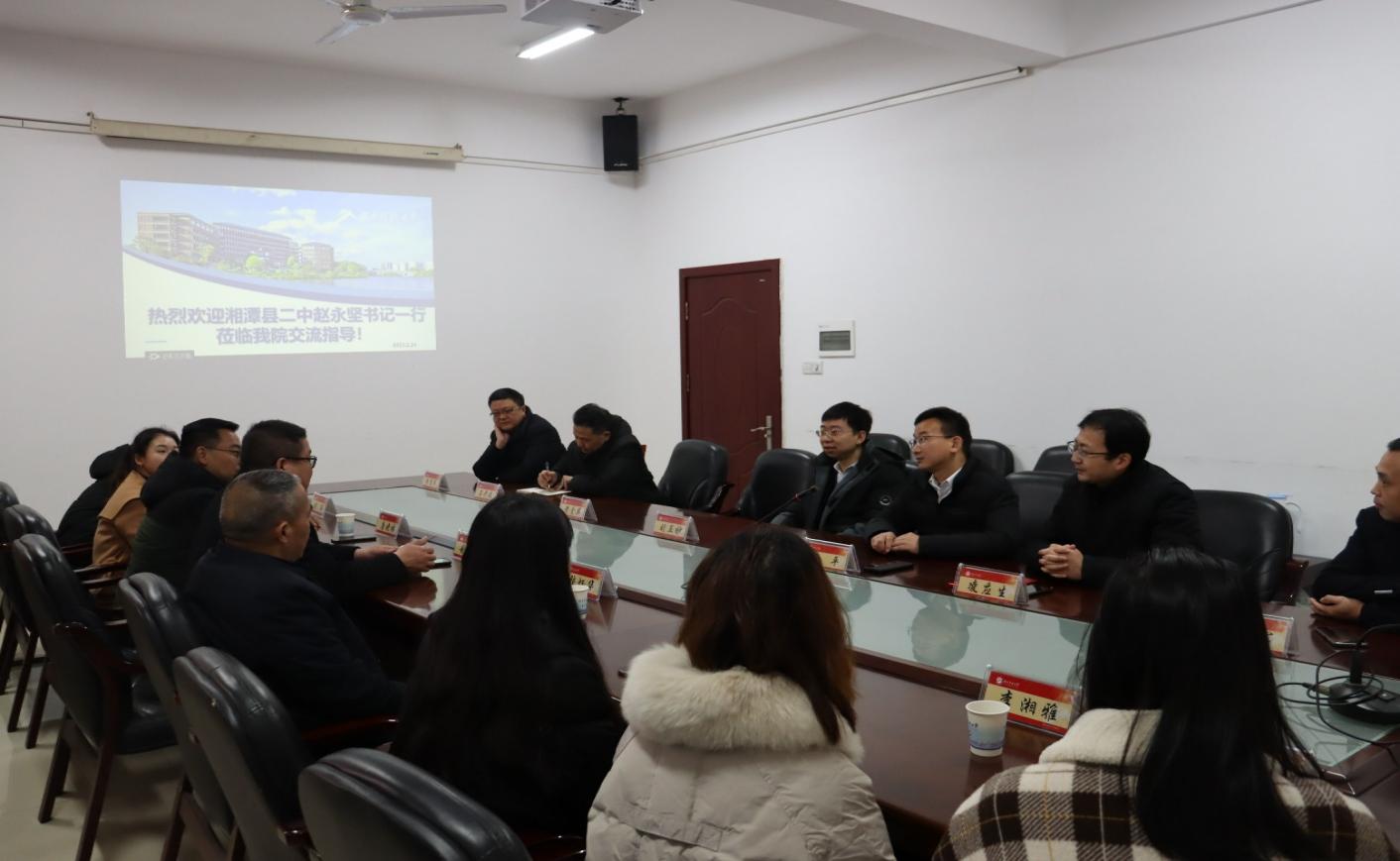 随后,与会人员就落实大中小学思想政治教育一体化建设以及加强师范专业培养与实习基地协同育人机制展开探讨。韩平副院长详细阐述了我院思政本科、学科思政硕士研究生教育实习、高校高中科研合作的情况和推进教师教育协同发展的设想;湘潭县二中赵永坚书记表示二中会根据我院教育实习的工作安排,在实习指导老师配备、住宿安排以及餐饮等方面保障实习顺利开展;张炳华老师代表二中政治教研组介绍了二中在思政课改革创新方面所取得的成果,并就中学思政课教学教研方面存在的问题同与会老师展开了深入研讨。