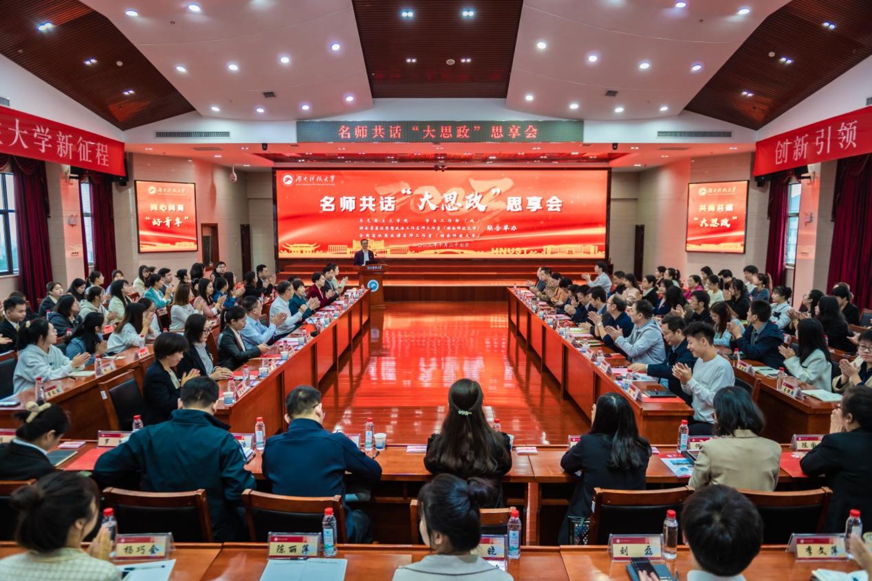 10月27日,永利yl23411、学生工作部与湖南省高校思想政治工作名师工作室、全国高校思政课名师工作室在学校立德楼五楼报告厅联合举办“名师共话‘大思政’思享会”。此次会议紧紧围绕如何办好“大思政课”这一主题进行,分为名师主讲、青椒分享和互动交流三个环节。省委教育工委宣传部部长、省教育厅思政处处长甘文波,省委教育工委宣传部副部长、省教育厅思政处副处长曾思亮,省委教育工委宣传部、省教育厅思政处一级调研员陈解应邀出席并作点评。湖南科技大学党委委员、副校长廖湘岳致辞。全国高校思政课名师工作室、湖南省高校思想政治工作名师工作室负责人等优秀思想政治工作者应邀作学术报告和经验分享。会议由湖南科技大学学生工作部部长蒋利平主持。永利yl23411、潇湘学院和相关教学院领导及师生代表参会并进行了互动交流。