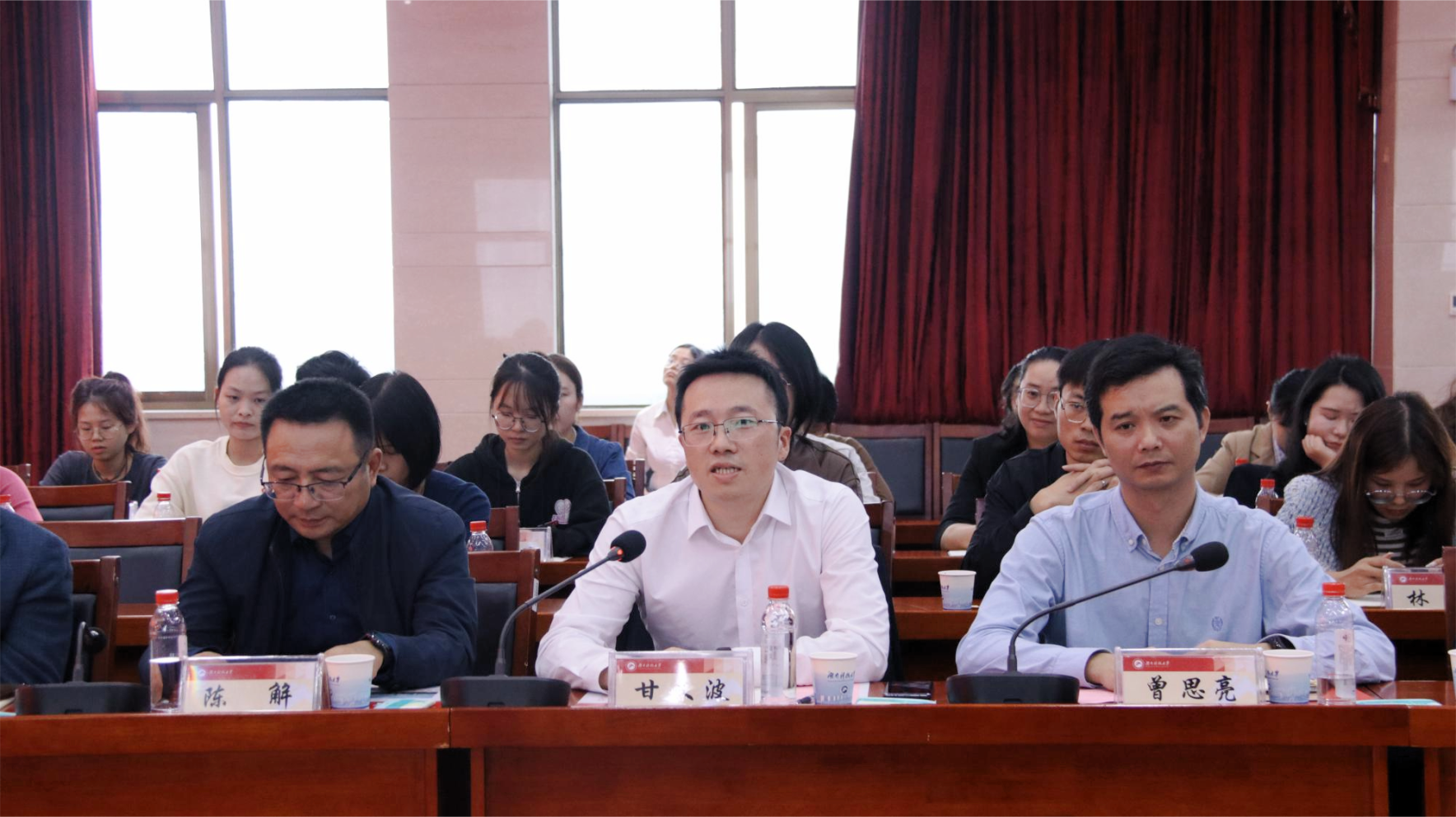 省委教育工委宣传部部长、教育厅思政处处长甘文波对湖南科技大学“大思政”工作的做法和成效给予高度肯定,对进一步加强和改进思想政治工作提出了三个“再认识”,即再认识思想政治工作的意义、再认识现存的问题、再认识未来的路径。他强调,思想政治工作者必须是一个“心底无私天地宽”的有理想的群体,要做好“善战者无赫赫之功”的思想准备;要健全大中小学思想政治教育一体化机制,打造“大思政课”生态环境。曾思亮在点评环节强调,思政课建设要坚持守正创新,注重发挥实效性,要全面理解、准确把握,突出重点、形成特色,强化保障、推动落实,尤其要通过建设“大课堂”、搭建“大平台”、建好“大师资”,推动各类课程与思政课同向同行。陈解在点评时强调,思想政治工作者必须坚持目标导向、问题导向和效果导向,为思想政治教育改革创新贡献自己的力量。