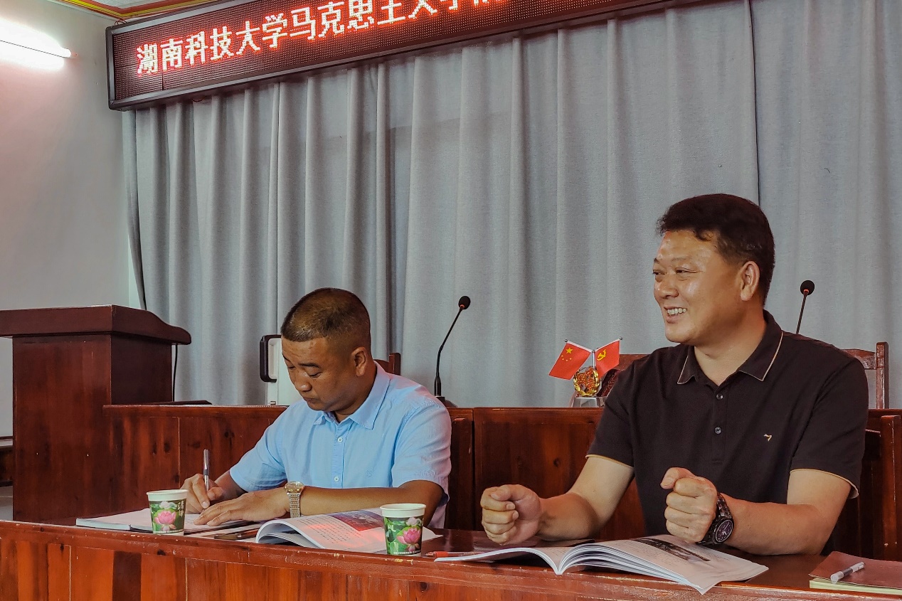 随后,我院宣讲团指导老师刘哲对蓬瀛村村委给予的重视与支持表示真挚的感谢,并与与会人员就本次社会实践活动的相关规划进行了深入交谈。同时,他承诺:“薪火湘传”理论宣讲团在接下来的实践活动必将以实干开路、实绩说话、实效检验,高效务实地推进乡村振兴工作,真正将“三下乡”落实到为当地群众办事上来,为乡村振兴助力赋能。