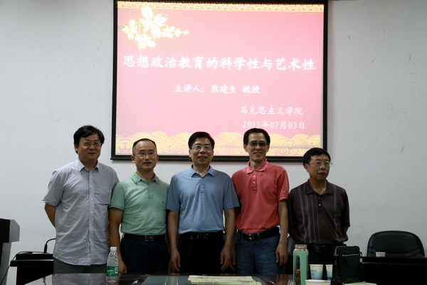 应马克主义学院的邀请,武汉大学永利yl23411博士生导师熊建生教授于7月3日下午在十教506报告厅做了一场“思想政治教育的科学性与艺术性”的精彩学术报告。永利yl23411院长徐德刚教授主持了本场报告会,永利yl23411教师和部分研究生在场聆听。