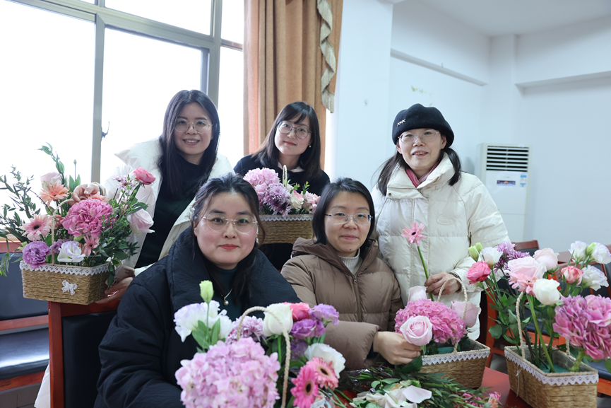 在春风和煦、万物复苏的三月,在三八妇女节即将到来之际,我院举办了一场别开生面的花艺茶叙会。唐小芹院长也莅临现场,与女教职工共享节日美好时光,并合影留恋。